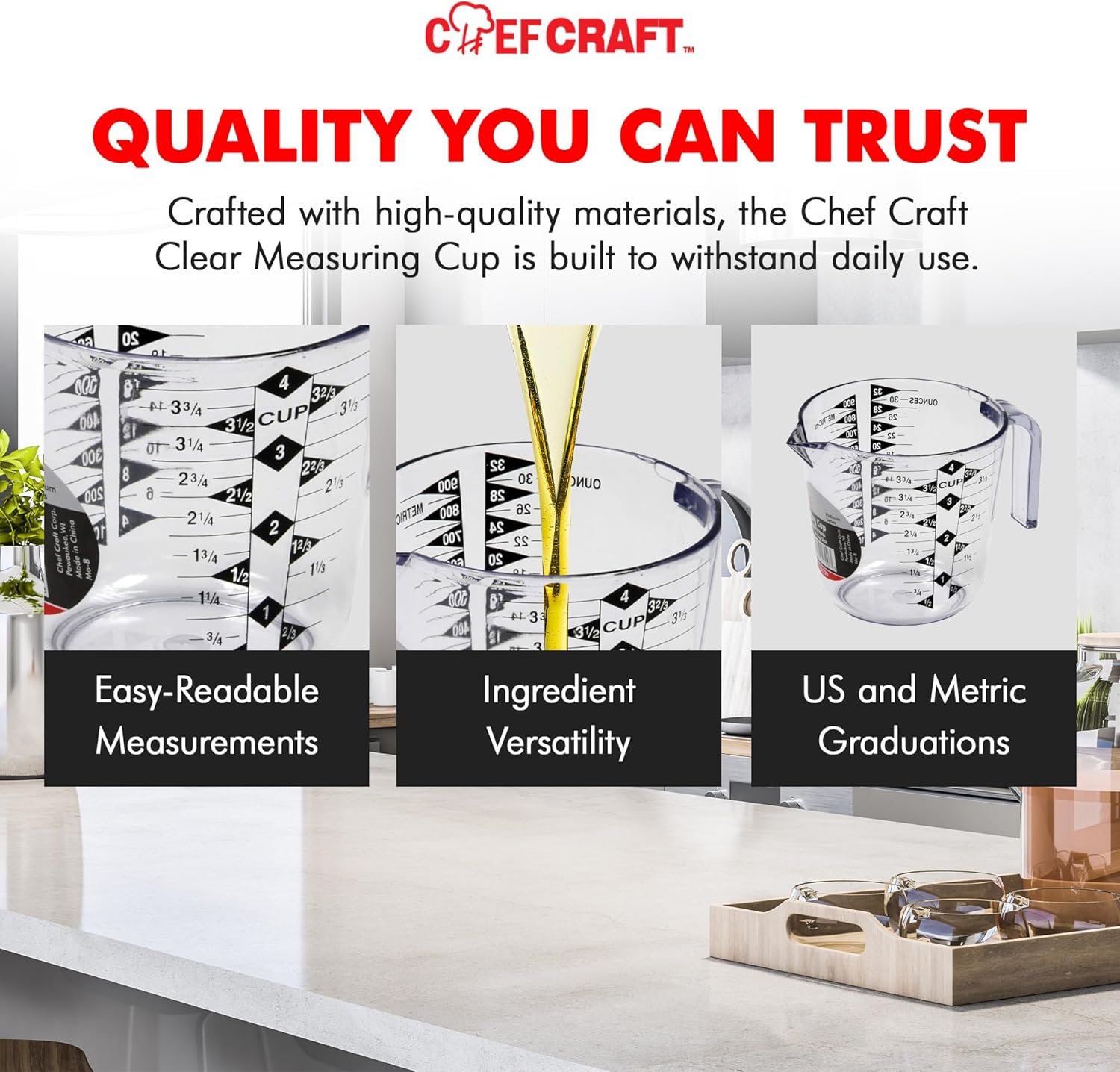 - Both US and metric graduations to suit any recipe