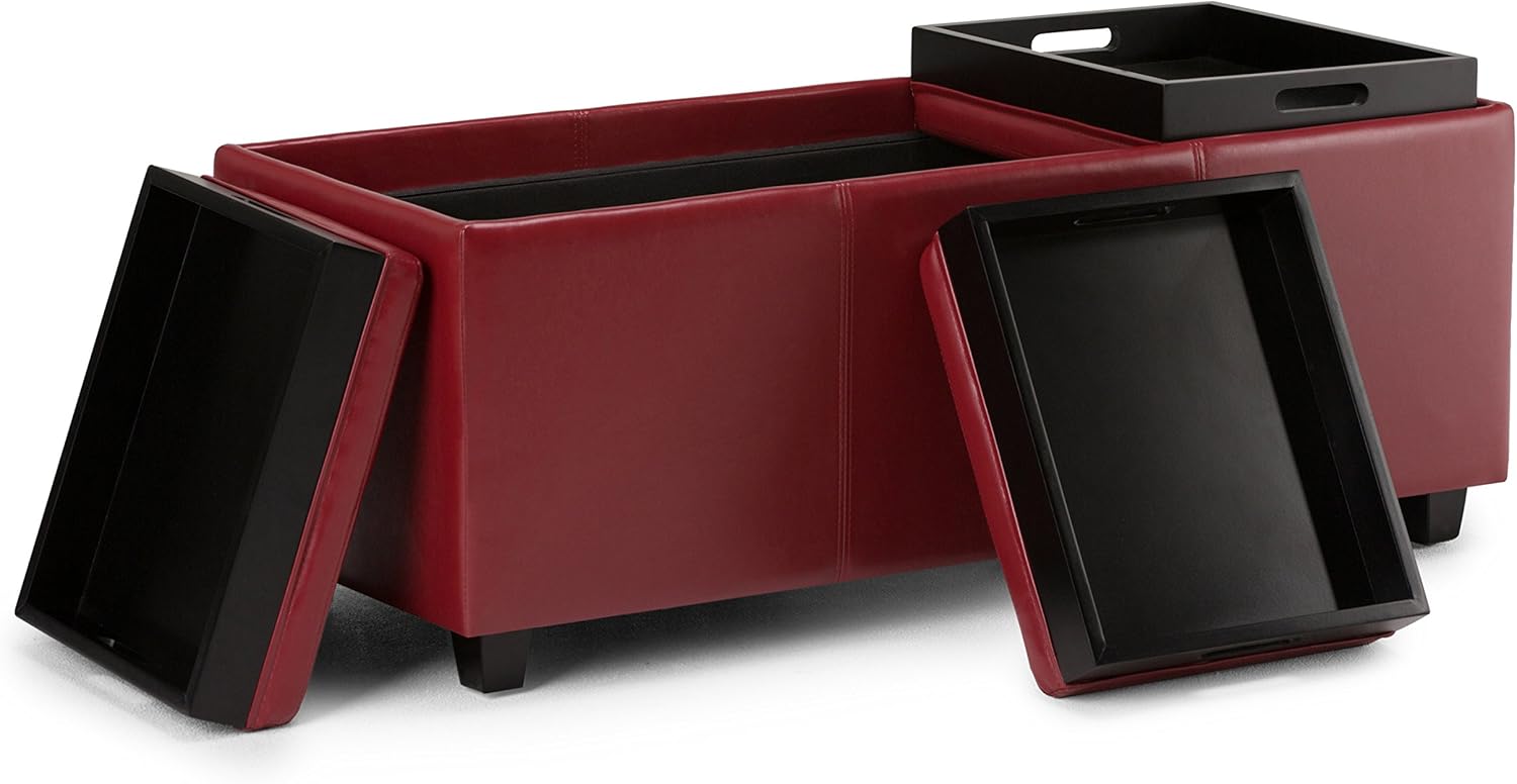 SIMPLIHOME Avalon 42 inch Wide Contemporary Rectangle Storage Ottoman in Red Vegan Faux Leather, Assembled, for the Living Room, Entryway and Family Room