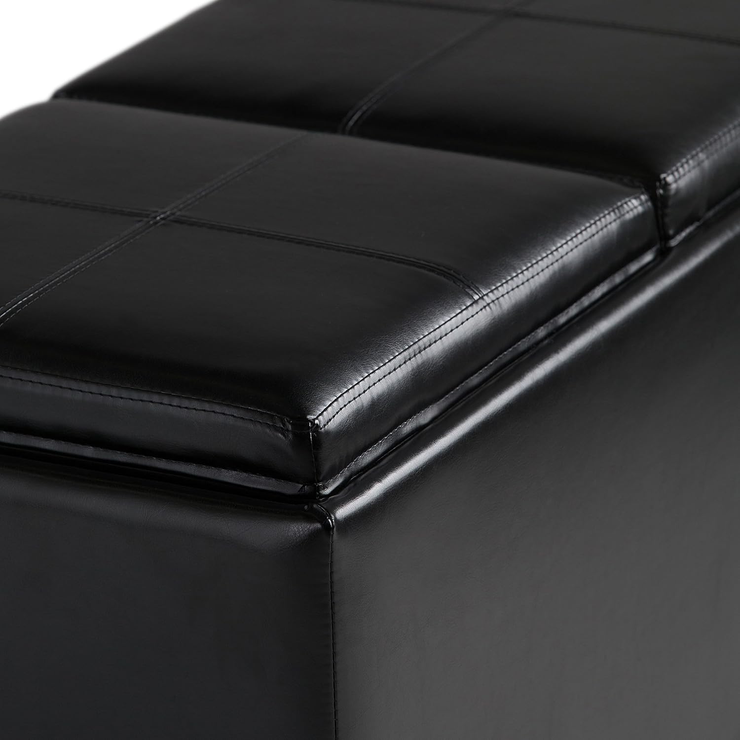 SIMPLIHOME Avalon 35 inch Wide Contemporary Rectangle 5 Pc Storage Ottoman in Midnight Black Vegan Faux Leather, Assembled, for the Living Room, Entryway and Family Room