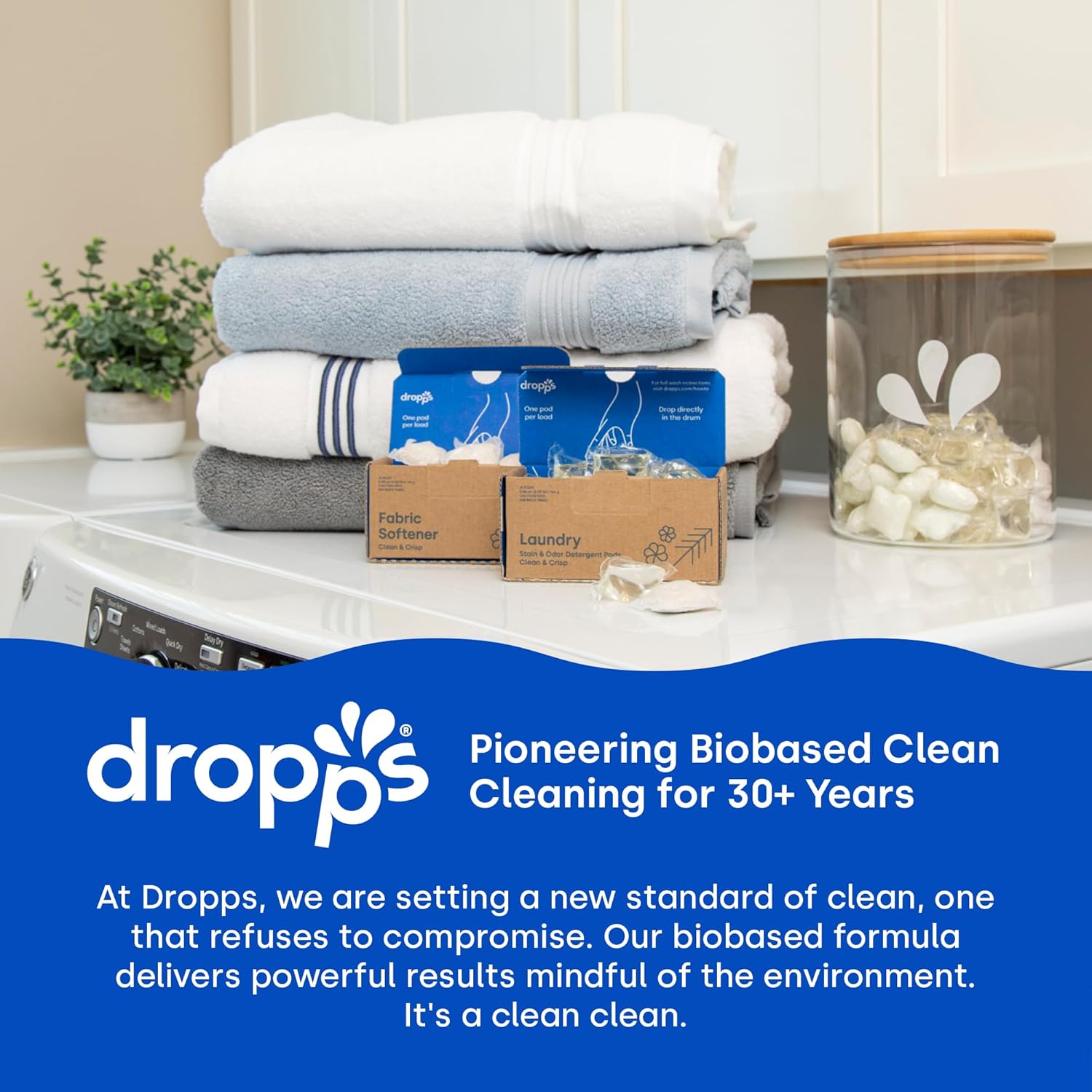 - ABOUT DROPPS: For over 30 years, Dropps has pioneered a cleaner clean – without compromise. As a B -Corp and trusted leader in household cleaning, Dropps delivers cutting-edge cleaning power in revolutionary liquid laundry and powder dish pods. Manufactured in North America. Leaping Bunny approved.