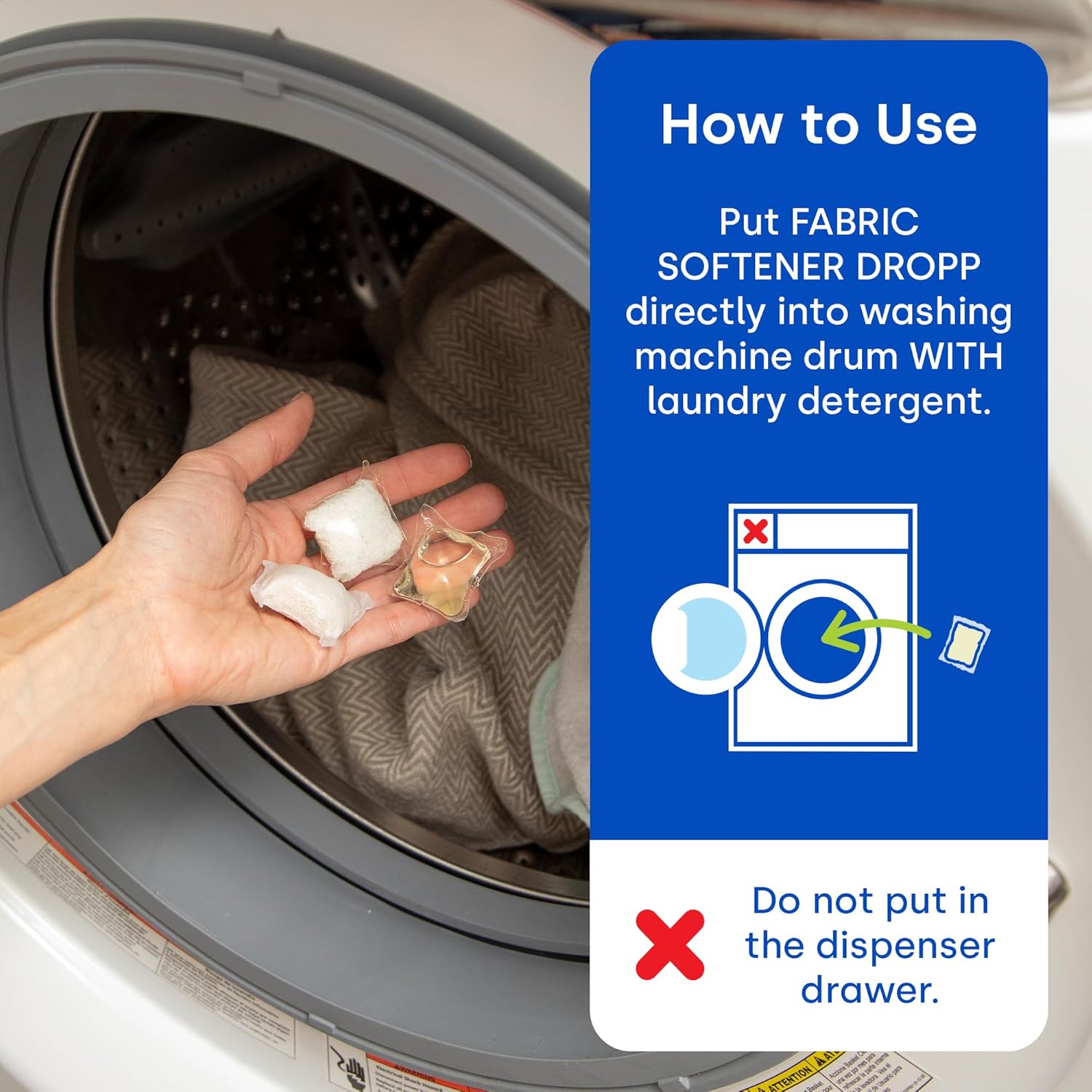 - CONVENIENT AND EASY TO USE: Simply add a fabric softener Dropp with your laundry detergent to the washing machine drum at the beginning of your wash cycle. Whether you have a high-efficiency or standard washing machine, our pods are compatible with all types, making them a versatile addition to your laundry routine.