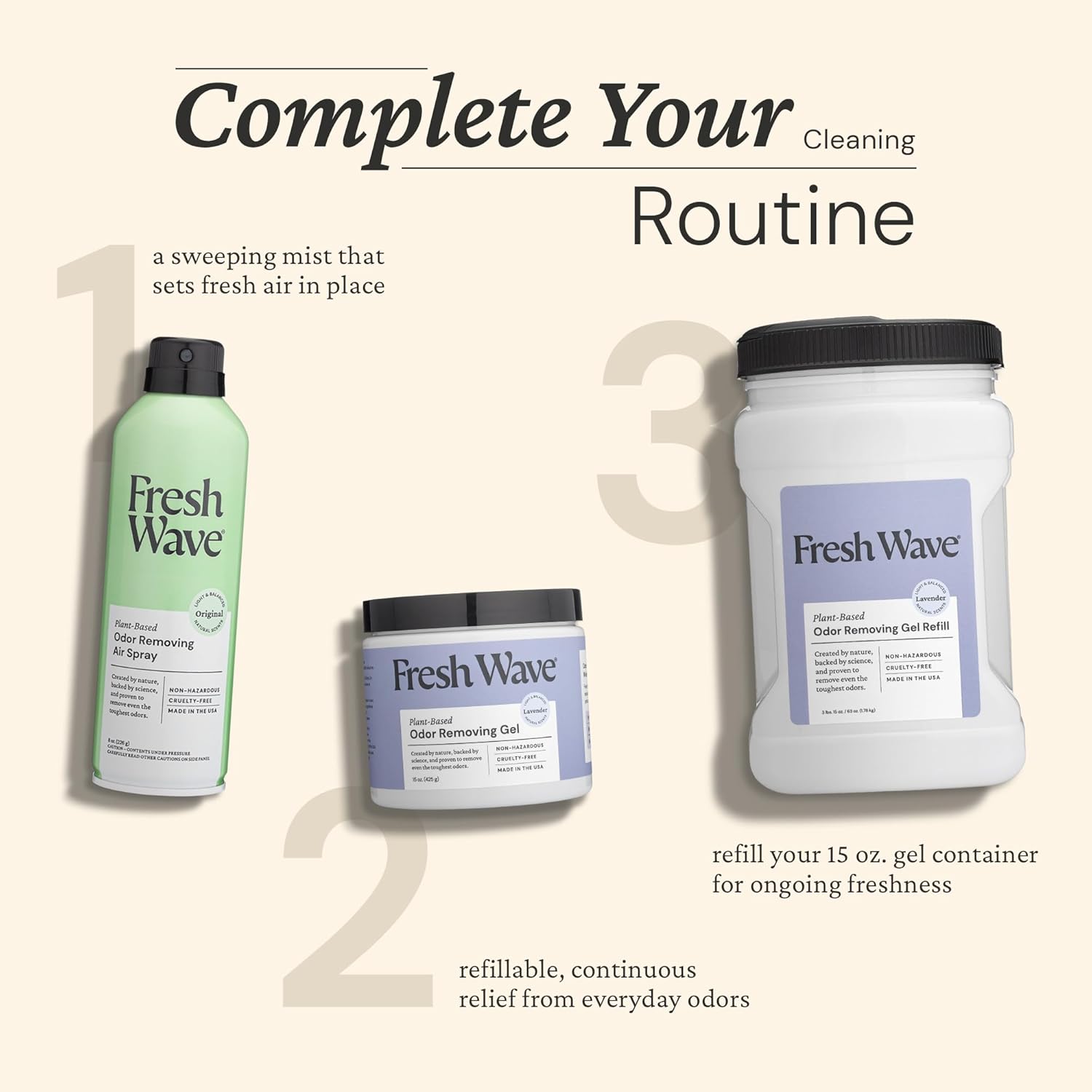 - HIDDEN ROOM DEODORIZER: Each 15oz. of lavender odor gel lasts about 30-60 days and can be topped off with Fresh Wave Gel Refills as needed (sold separately). Tuck the odor neutralizer away on bookshelves, cabinets, closets, and trash canisters.