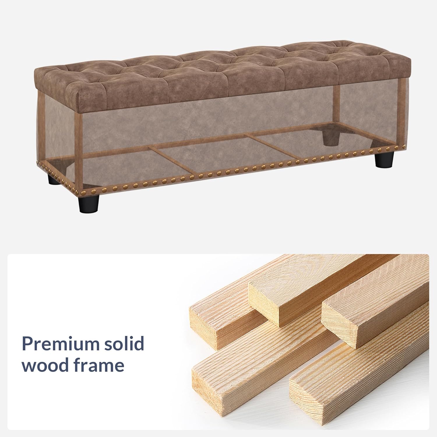 BELLEZE 47" Storage Ottoman, Storage Bench with Safety Close Hinge, Faux Leather Button-Tufted Ottoman for Living Room, Entryway, Hallway, Foot Rest, Support 300lbs - Rustic Brown