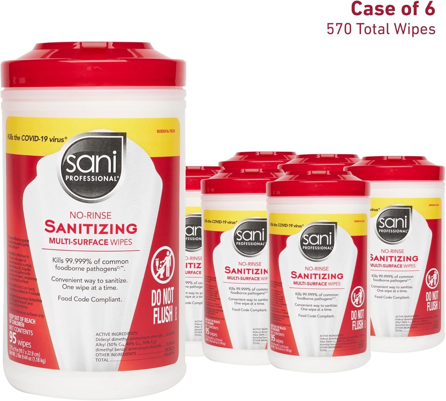PDI Sani-Professional No-Rinse Sanitizing Wipes, Multi-Surface Cleaning for Food Contact Surfaces, Kitchens, Restaurant Tables, 95 Large 7.75" x 9" Wipes per Canister