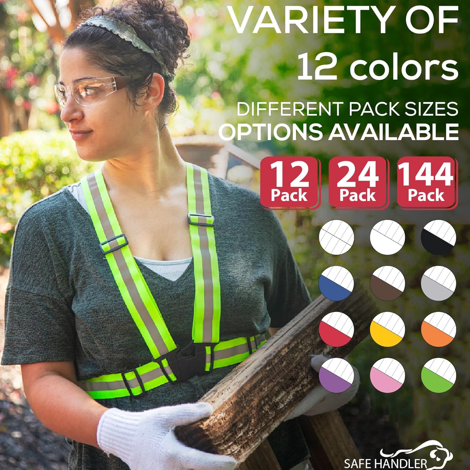 - SAFE HANDLER by Bison Life - Hyline Safety Glasses, Clear Lens Color Temple, 12 Boxes of 12 assorted colors each. Each box consist one color of: pink, red, orange, yellow, purple, green, black, turquoise, grey, blue, brown, clear