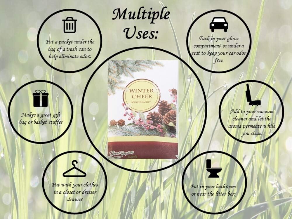 - SEASONAL AND TIMELESS SCENTS : It’s the most magical time of year, and our Winter Cheer sachet brings the Ideal holiday fragrance to your home. With a fragrant blend of pine and holly, accented by a light citrus top note, it’s the ideal scent to brighten any space and fill your home with festive cheer.