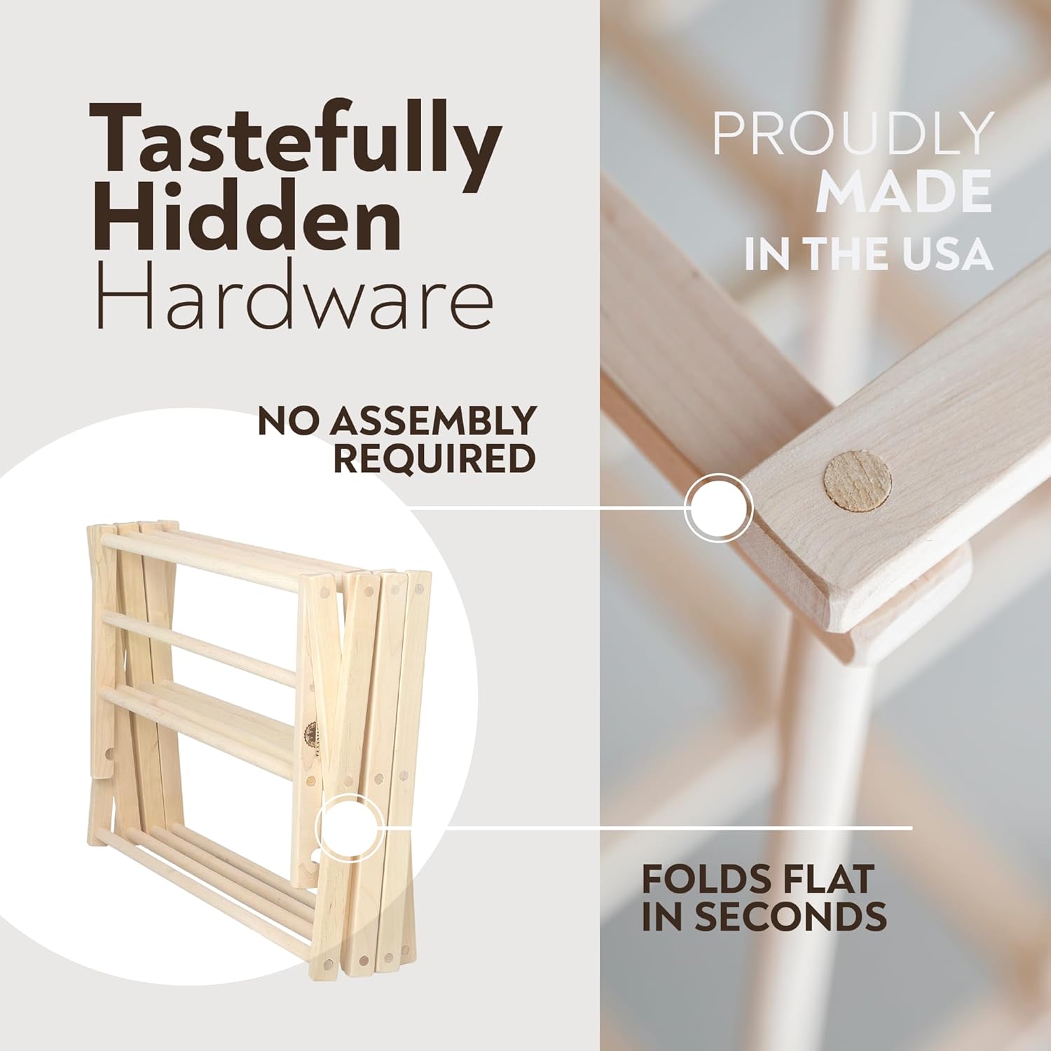 - 100% USA-MADE: Proudly crafted in Pennsylvania with locally sourced solid maple wood, ensuring a durable and long-lasting clothes drying rack for your home.
