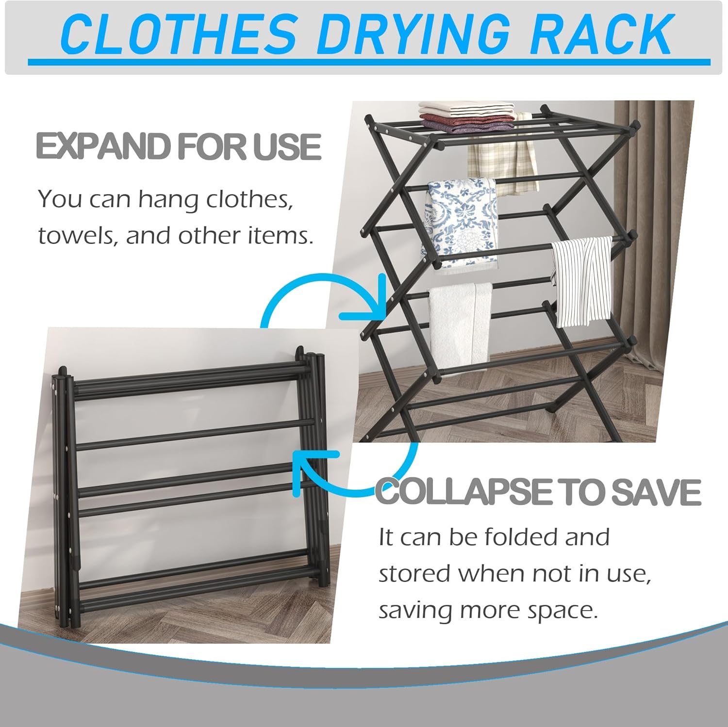 Household Indoor Folding Clothes Drying Rack, Dry Laundry and Hang Clothes,Towel Rack (Black)