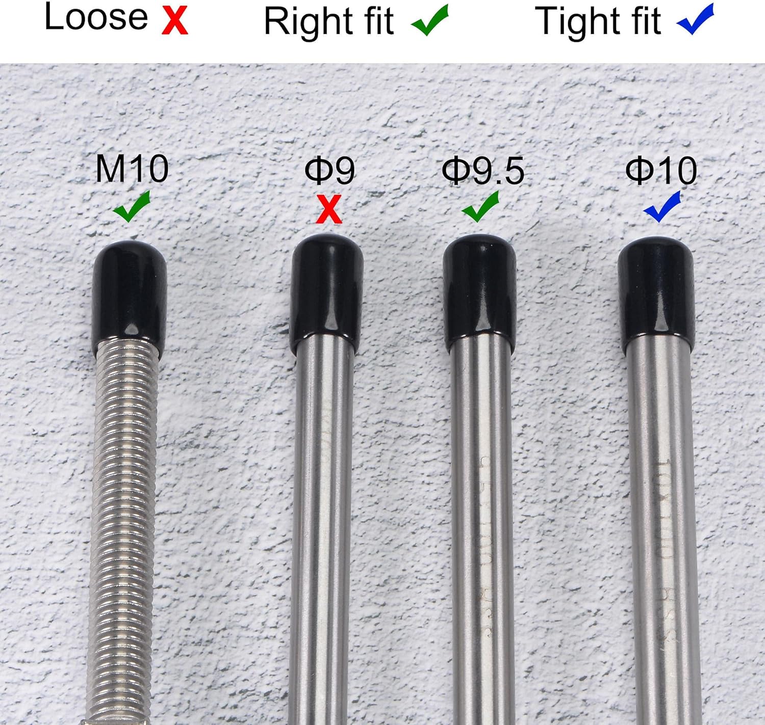 - 【Size Selection】Because rubber material is soft and elastic, we recommend choosing rubber end cap that is slightly smaller than the outer diameter of the product to be protected. For example: the outer diameter of your product is 9.8mm dia, choose the rubber cover of 9.5mm!