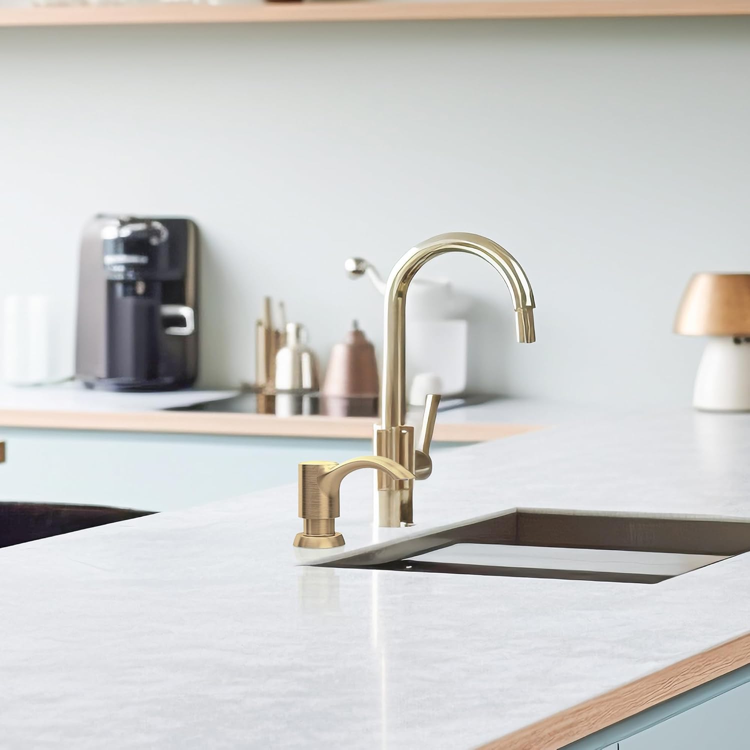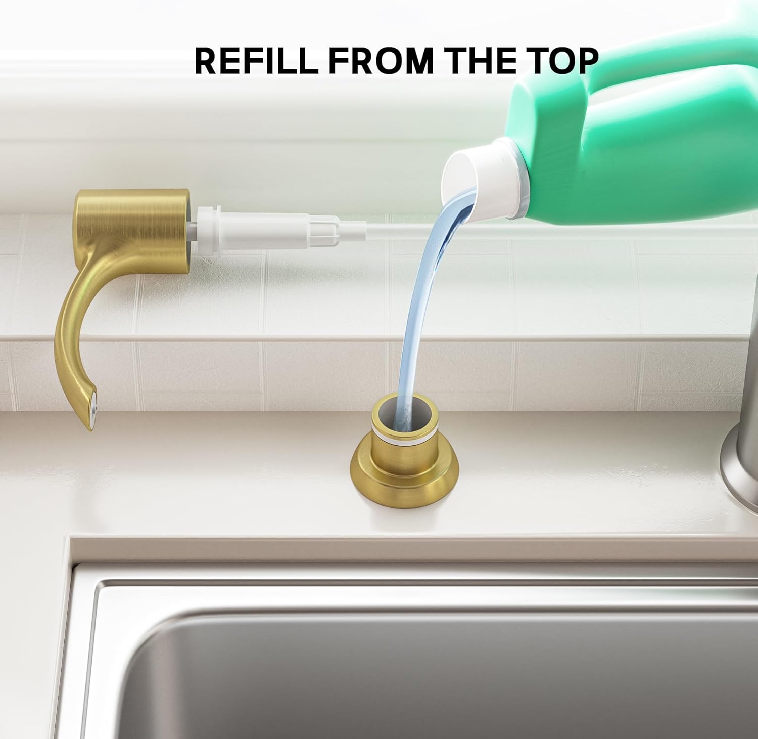 - 【Seamless Coordination】- The dispenser complements most gold kitchen faucets, enhancing the overall aesthetic of your sink area. It contributes to a neater, cleaner, and more efficient kitchen environment.