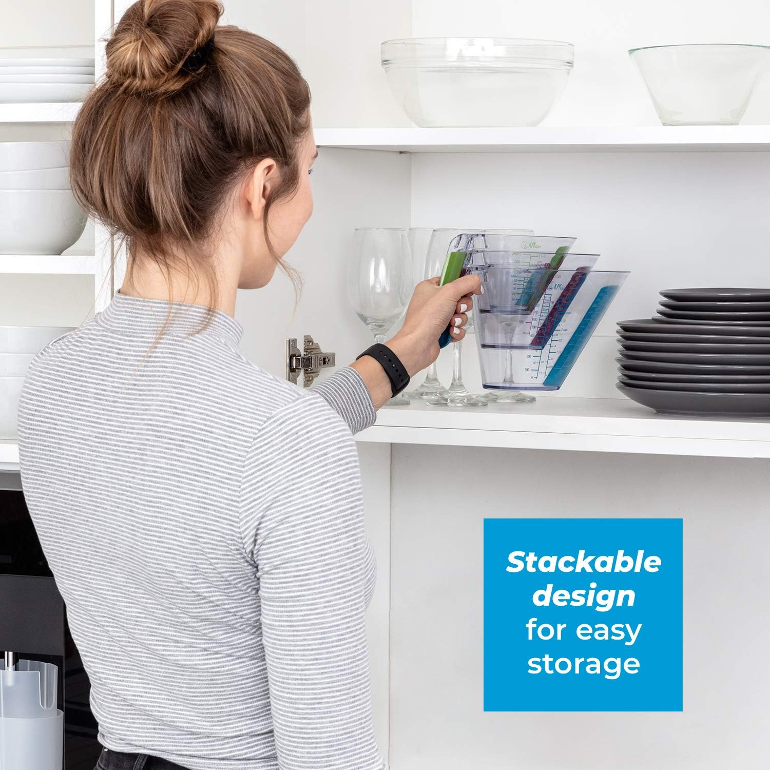 - 💪 STACKABLE DESIGN FOR EASY STORAGE – Our 4 piece measuring cups plastic set features a unique stackable & nesting design which makes it super easy to store. When you‘re done, just nest all measure cups together for compact storing. Our measuring set cups also feature a non-slip handle for a comfortable grip so you will pour with precision, even with wet hands. Makes a great holiday gift for every baking lover!