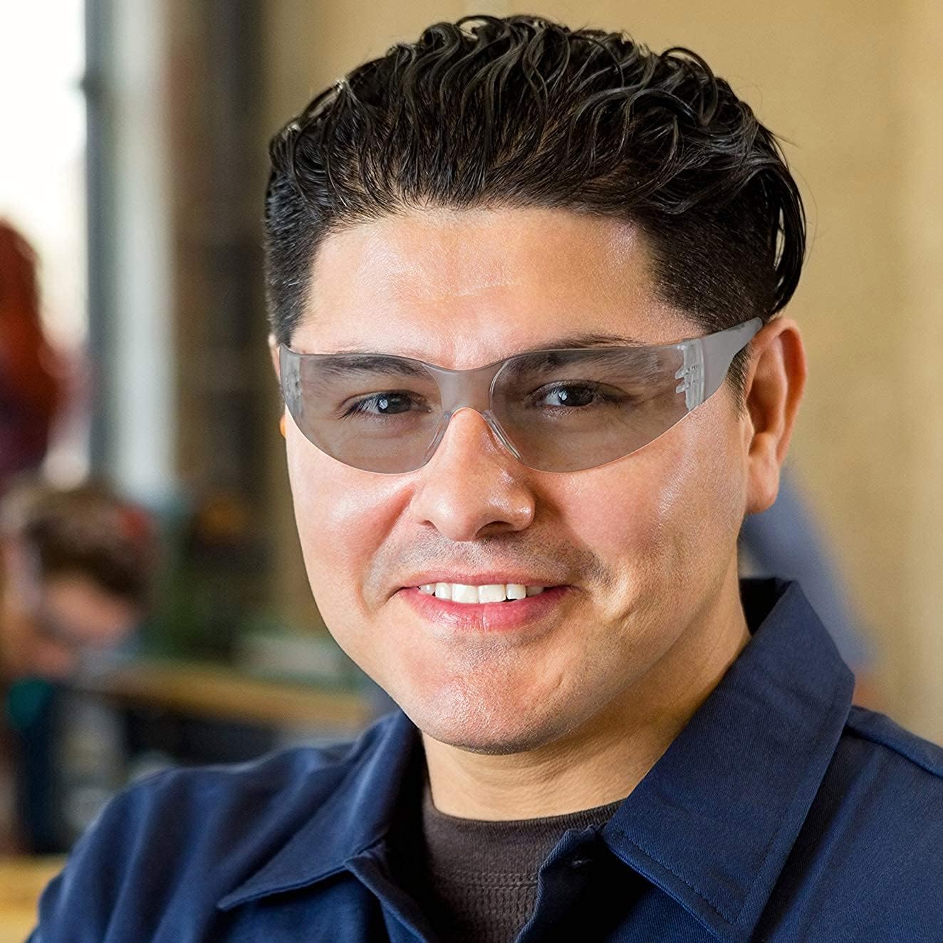 - Built for Comfort & Safety – Incredibly light weight safety glasses with a wrap-around lens style that provides built-in side shield safeguards and ballistic impact protection while ensuring a snug, comfortable and secure fit that helps minimize slippage. Easily wear for long durations of time to protect eyes against wet or dry flying debris and airborne contaminants. Deep, universal-fit temples provide full brow and side protection equal to that of eye wear with large side shields.