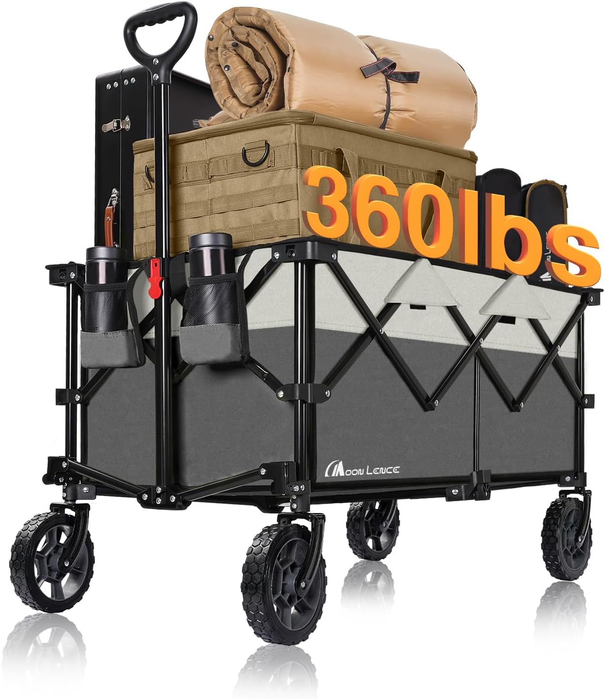 Moon Lence Collapsible Folding Wagon Cart Heavy Duty Folding Garden Portable Hand Cart with All-Terrain Beach Wheels, Adjustable Handle & Drink Holders (Grey & Ivory)