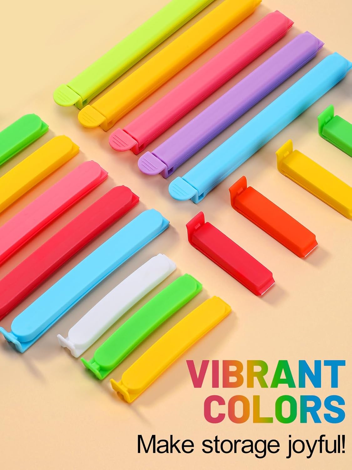 - A Rainbow of Vibrant Colors: Add a pop of fun and personality to your food storage! Enjoy a wide assortment of rich, bright colors that make finding the right clip effortless and add a cheerful touch to your pantry, fridge, or freezer.