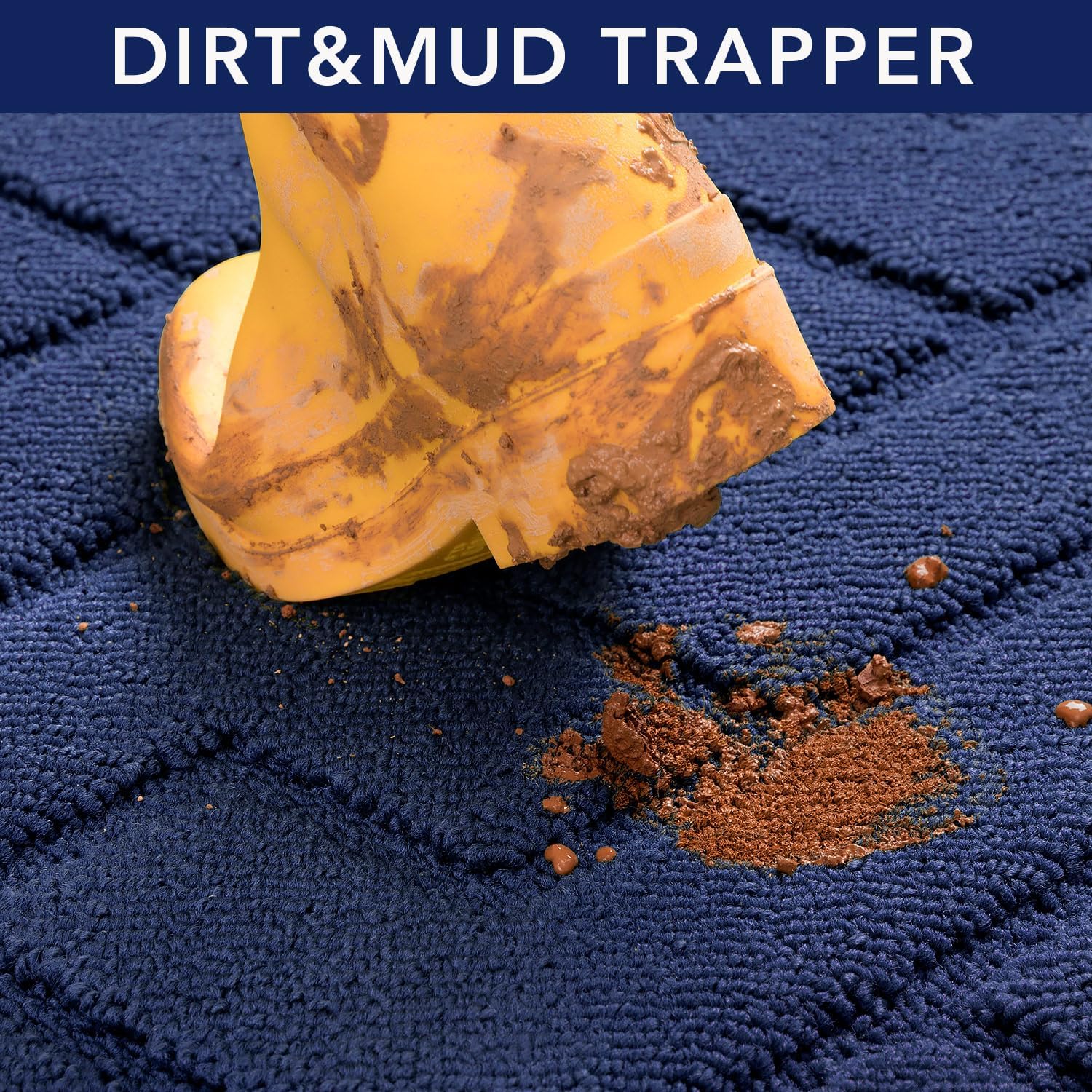 hicorfe Indoor Doormat,Front Back Door Mat TPR Backing Non Slip Mats 20"x31.5" Absorbent Resist Dirt Entrance Doormat Inside Floor for Entryway Washable Low-Profile(Navy Blue)