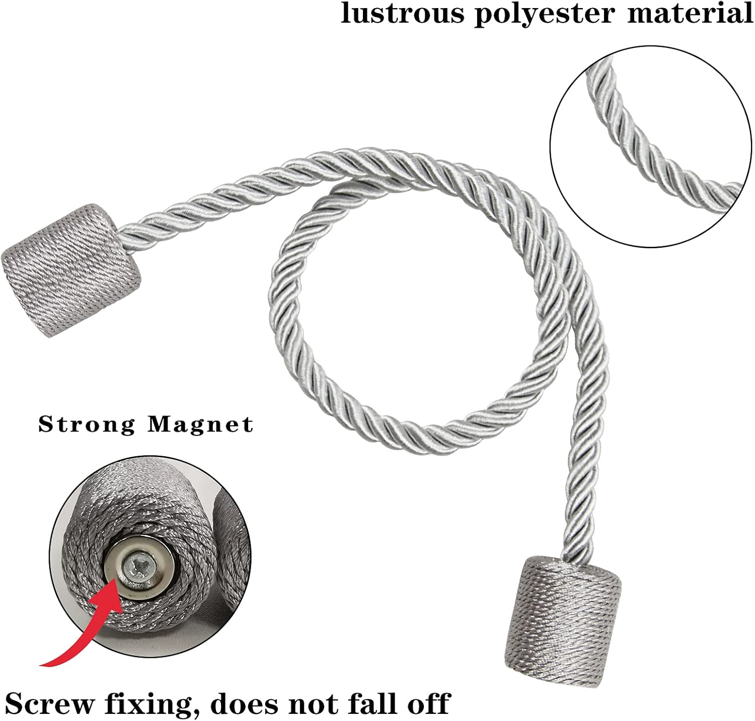 6 Pack Grey Strong Magnetic Curtain Tiebacks Outdoor Elegant Decorative Tie Backs Modern Rope Tiebacks for Drapes Window Curtain Holdbacks for Draperies