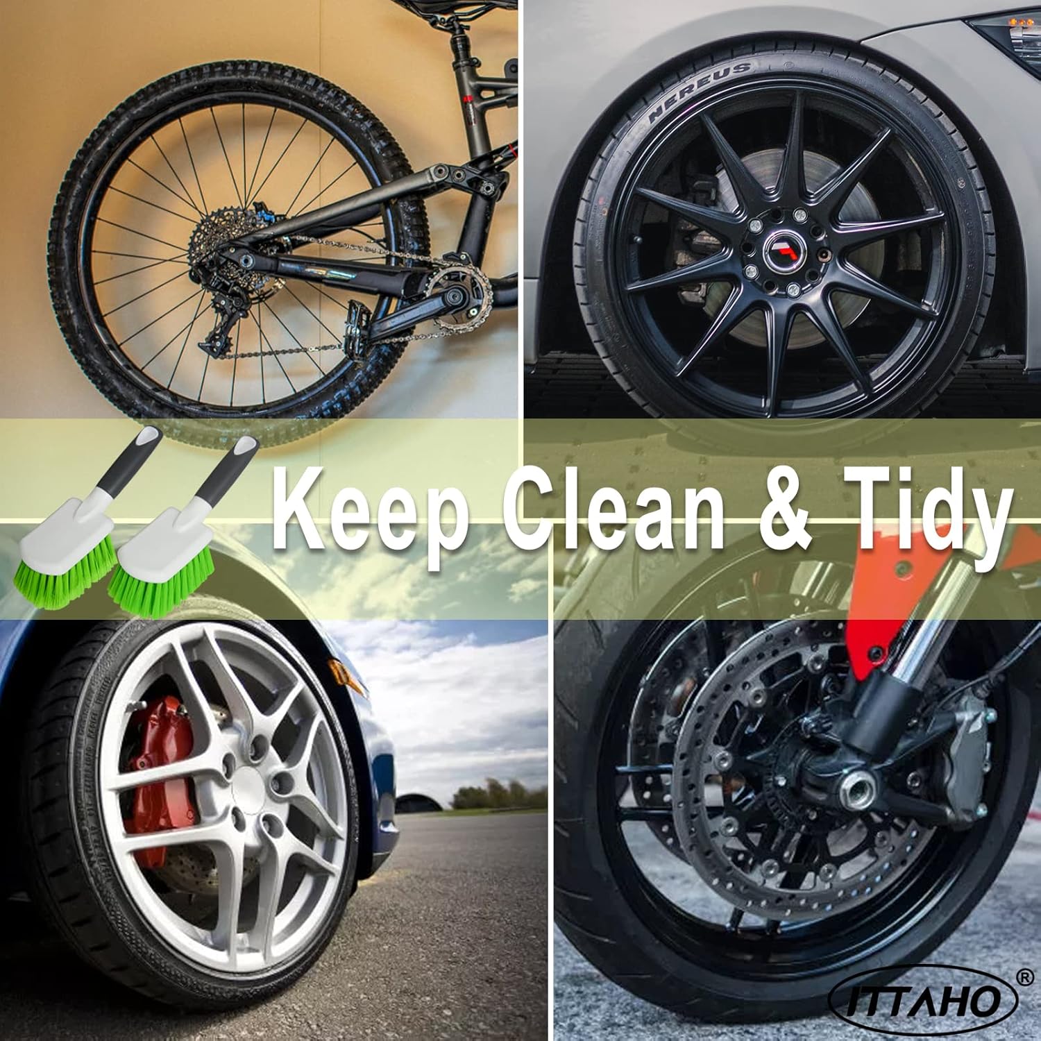 ITTAHO 2 Pack Car Wash Brush, Tire Brush for Cleaning Tires, Soft & Stiff Bristle Wheel Cleaner, Car Cleaning Supplies for Wheels, Rims, Carpet, Truck, SUV, Moto, RV, Motorcycle