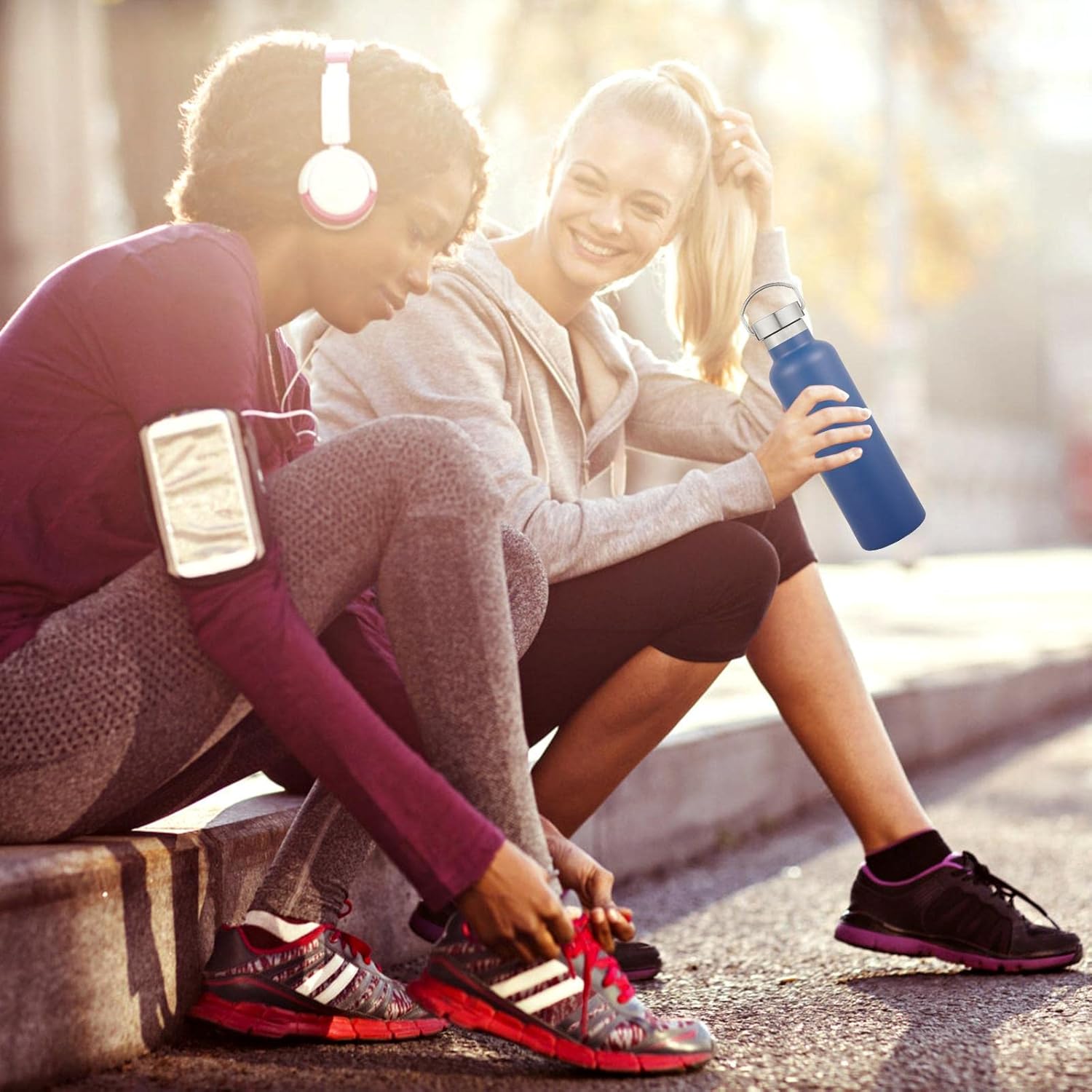 - PERFECT SIZE AND KEEP WARM FOR A LONG TIME: Our double wall insulation bottle protects temperature for up to 12 hours . The 20 oz stainless steel water bottle is perfect for everyday use and the cups fit on the bike cup holder and inside the backpack for your hiking, biking, beach, camping and fitness