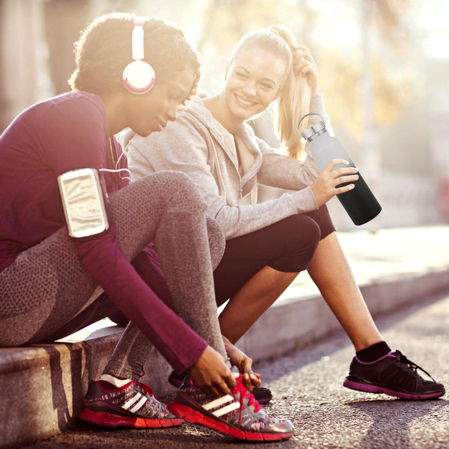 - PERFECT SIZE AND KEEP WARM FOR A LONG TIME: Our double wall insulation bottle protects temperature for up to 12 hours . The 20 oz stainless steel water bottle is perfect for everyday use and the cups fit on the bike cup holder and inside the backpack for your hiking, biking, beach, camping and fitness