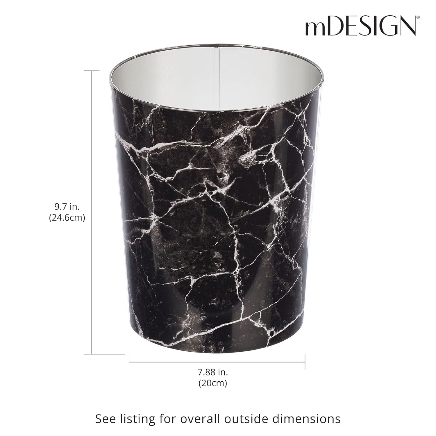 mDesign Round Metal Small 1.7 Gallon Recycle Trash Can Wastebasket, Garbage Container Bin for Bathrooms, Kitchen, Bedroom, Home Office - Durable Stainless Steel - Mirri Collection - Black Marble
