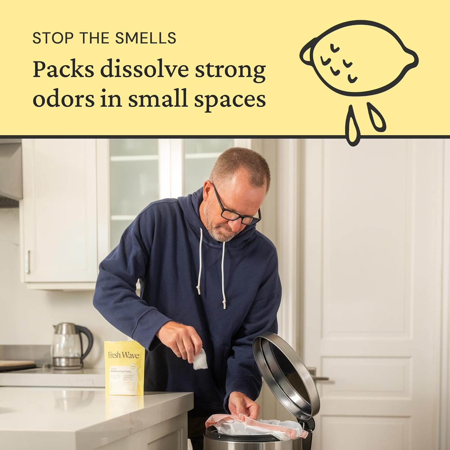 Fresh Wave Lemon Odor Eliminating & Deodorizing Packs | Bag of 6 | Safer Odor Relief for Small Spaces | Natural Plant-Based Odor Eliminator | Odor Absorbers for Home