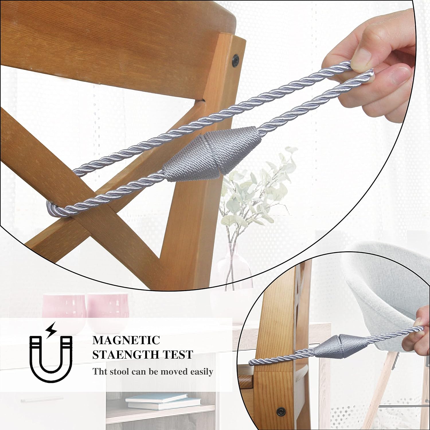 4 Pack Magnetic Curtain Tiebacks Rope Modern Handmade Curtain Tie Backs Decorative Drapes Weave Holdbacks for Window Décor, Grey