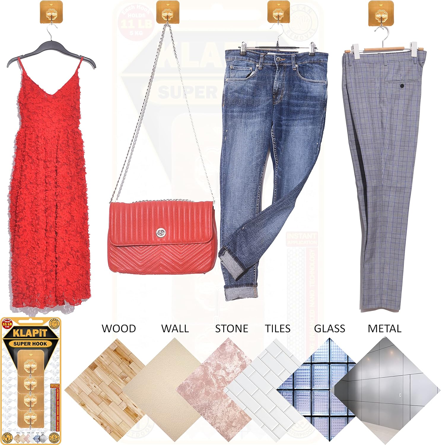 KLAPiT Super Hook - Heavy-Duty Adhesive Gold Wall Hooks, Holds Up to 11 lbs, Waterproof, No Damage, Easy Install on Tile, Wood, Stone, Glass & Metal - Made of Steel (Gold, 16pc)