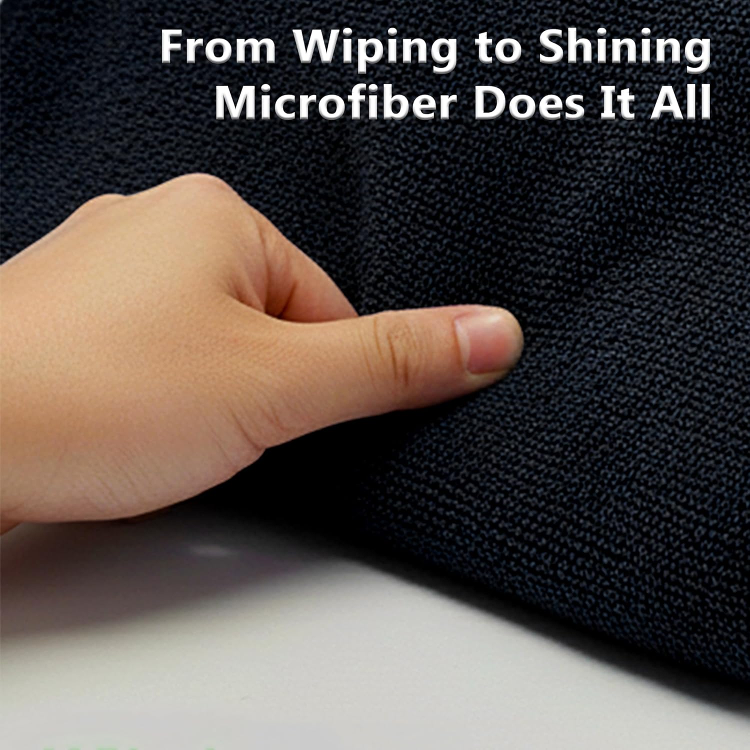 - 【 Popular Effective Cleaning Solution 】 Washable black microfiber car towels come in 16x16 size and are made of ultra-fine synthetic fibers. The microfiber towel cloths are especially effective at removing dirt and grime from cars, home and business, leaving a streak-free finish.