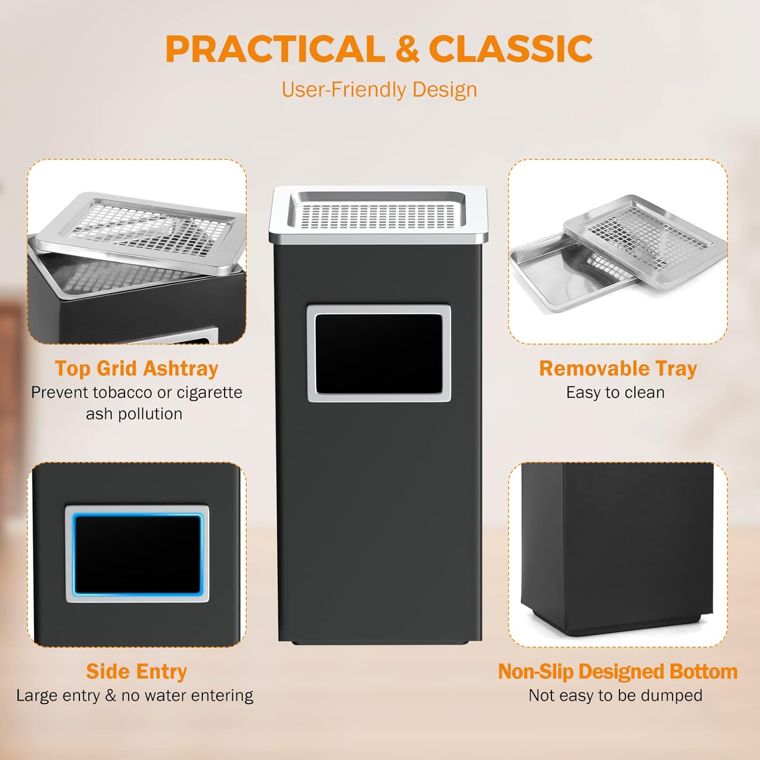 - USER-FRIENDLY - Square barrel body with rounded edges to prevent hand scratches. The anti-slip base is thickened and used to prevent scratching the floor.