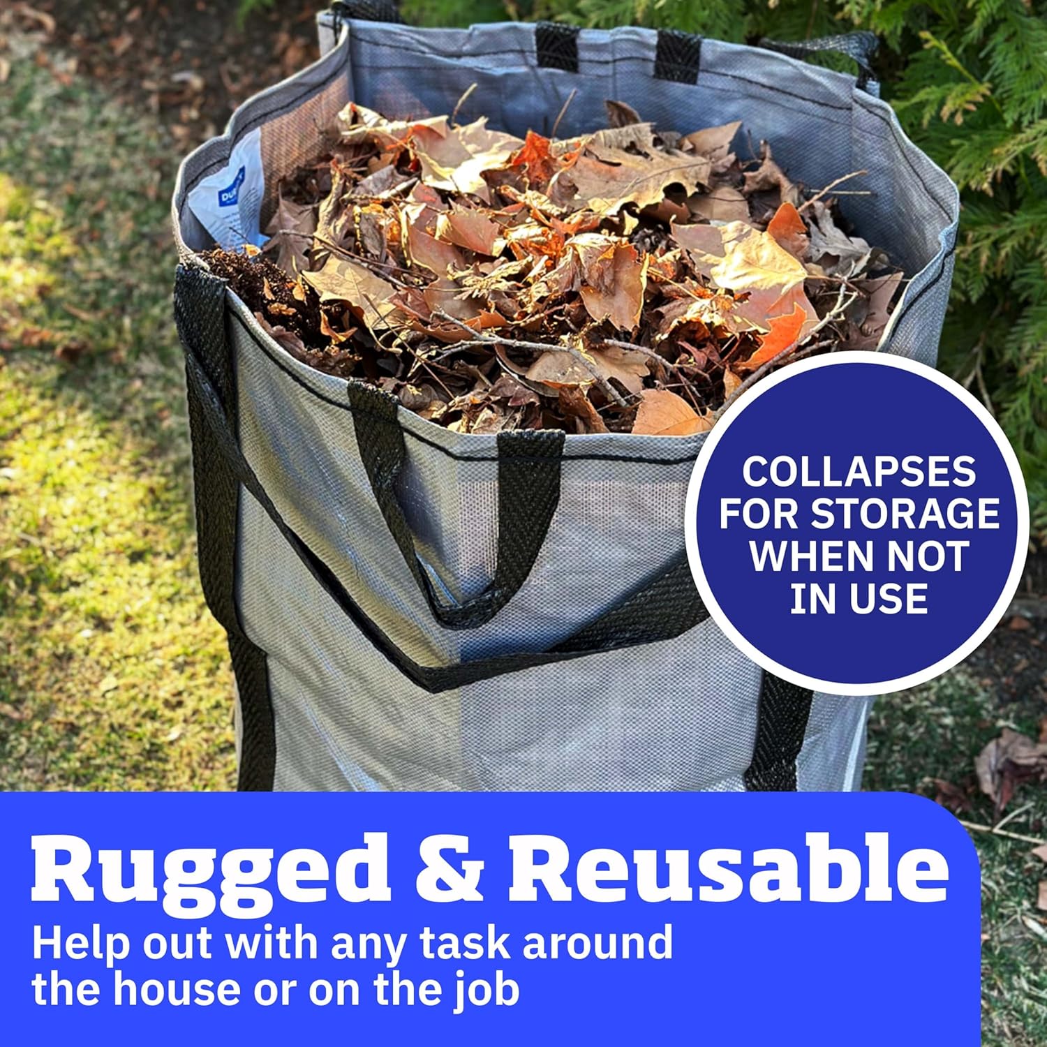 - MULTI-USE: Use both indoors and outdoors. Whether it is projects in your yard or garden, or storing that extra bedding or holiday decorations, these lawn bags heavy duty are up to the task. The versatility of the DuraSack makes it perfect for garden or yard waste, storm debris cleanup, demolition, home and garage storage, construction and contractor use, or even pop up trash cans for parties.