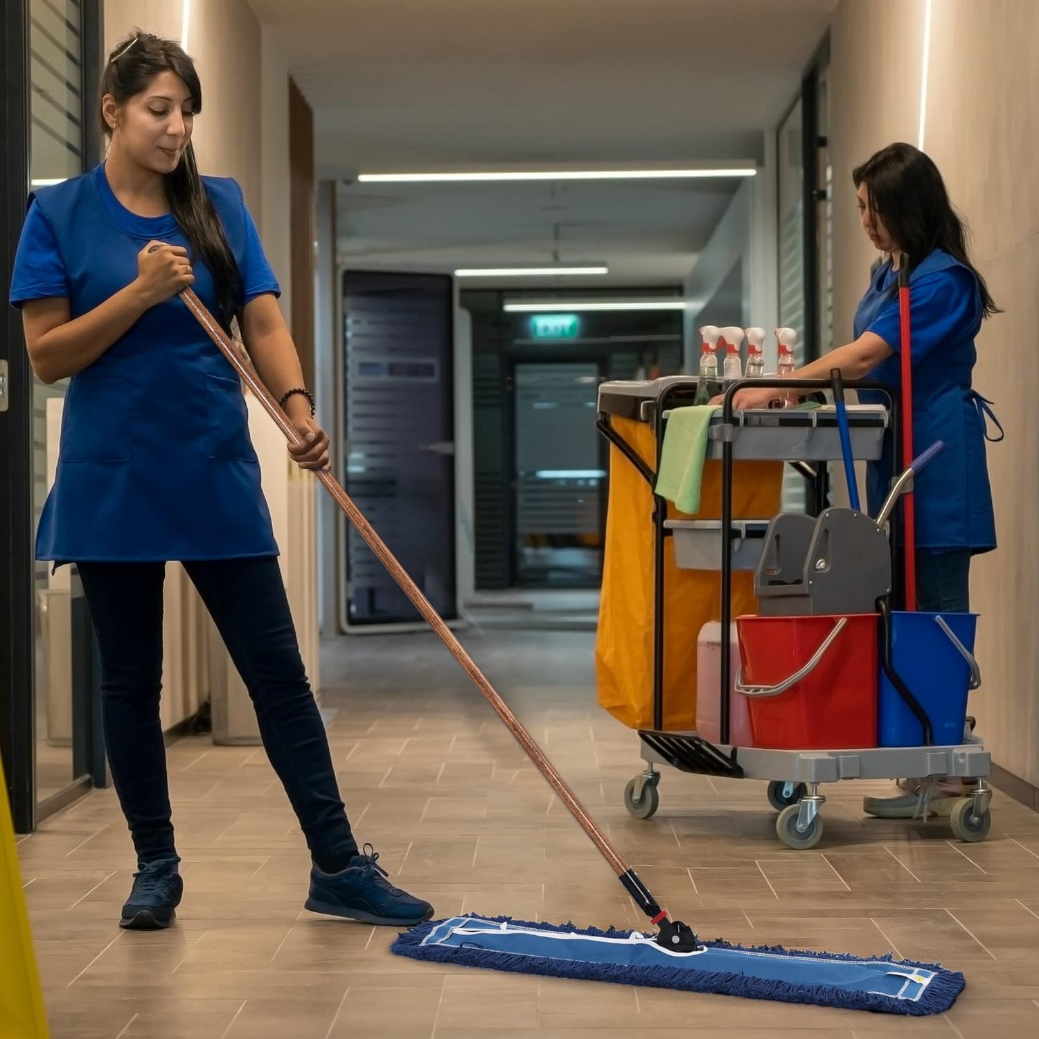 - The professional grade loop end dust mop blended yarn produces an exceptional result when picking up dirt, dust, pet hair and debris from even the most stubborn places. It also has a unique twist on the end that does not cause snags on anything