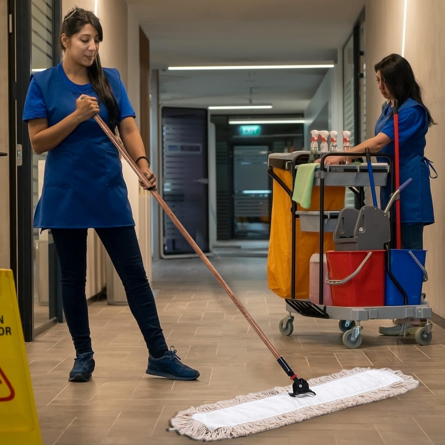 - 5" x 24", fit all standard 24" janitorial mop handle and wire frame. * Note: Mop handle is sold separately* Durable blue top with reinforced binding along the keyhole opening to prevent raveling or fraying.