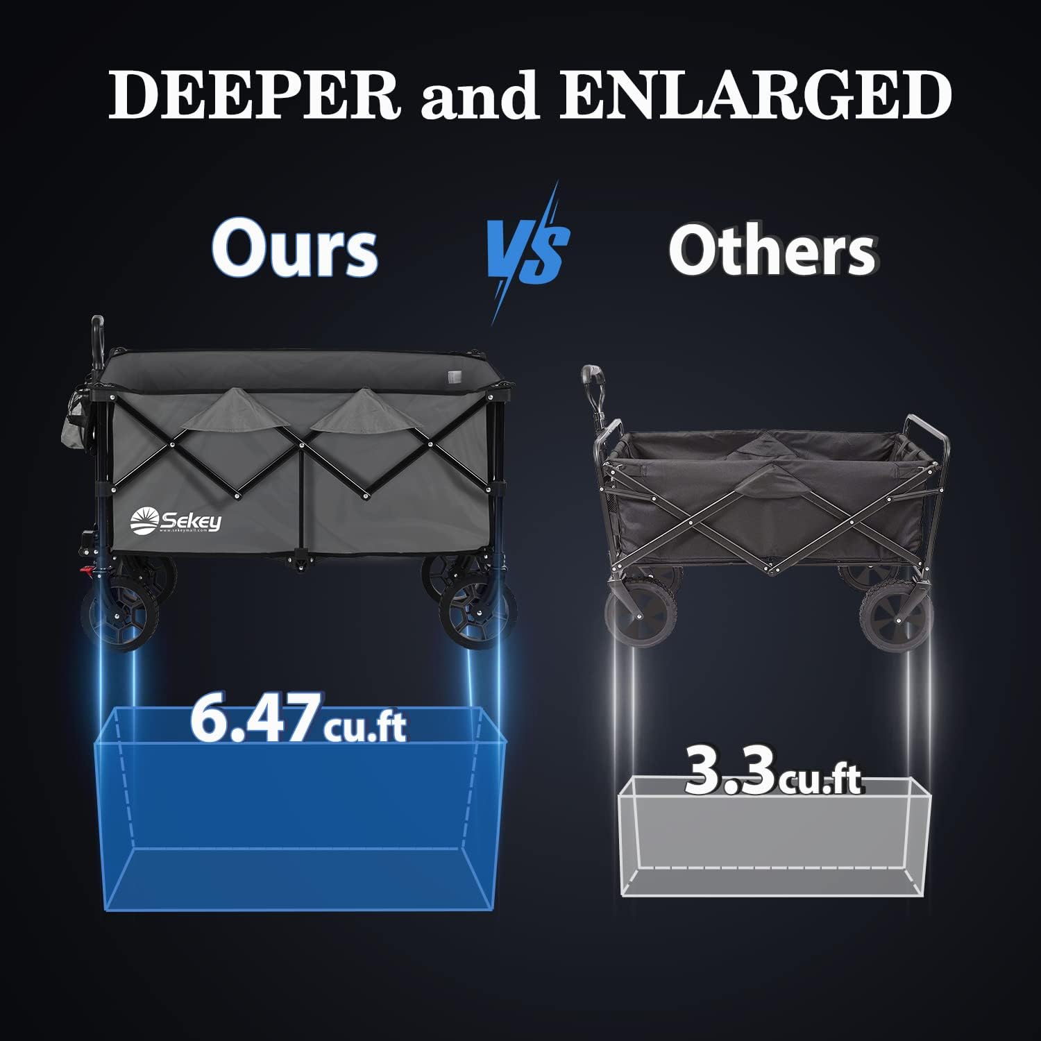 - ใ๐๐ฑ๐ญ๐ซ๐ ๐๐๐ซ๐ ๐ ๐๐๐ฉ๐๐๐ข๐ญ๐ฒใ : Equipped with high quality heavy duty metal frame to load up to ๐๐๐๐๐๐ and possesses a much ๐๐๐๐๐๐ and ๐๐๐๐๐๐๐๐ storage space of 35.5" L x 21.6" W x 14.5" H. The roomy internal volume and surprise loading capacity are both increased by ๐๐% than other wagons overall. Two mesh cup holders beverages safe and sound.