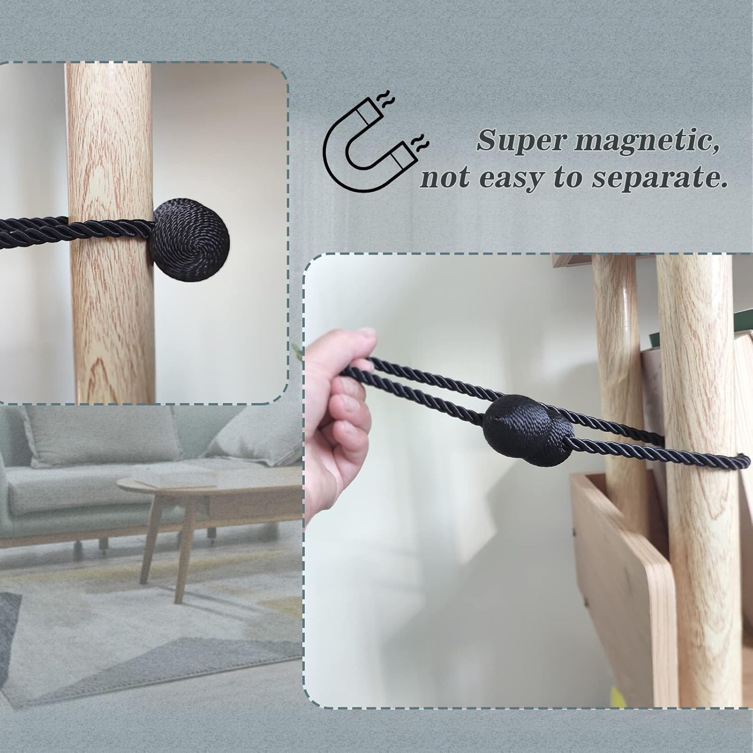 - [Upgrade Powerful Magnetic] Our magnetic curtain tiebacks magnets use high-end new imported nickel-plated magnets, more magnetic than ordinary magnetic, the upgraded magnets are also less prone to rusting, with strong corrosion resistance and durability. The rope of curtain tie adopts thickened solid polyester yarn, which is not only durable, but also not easy to wear or pilling.