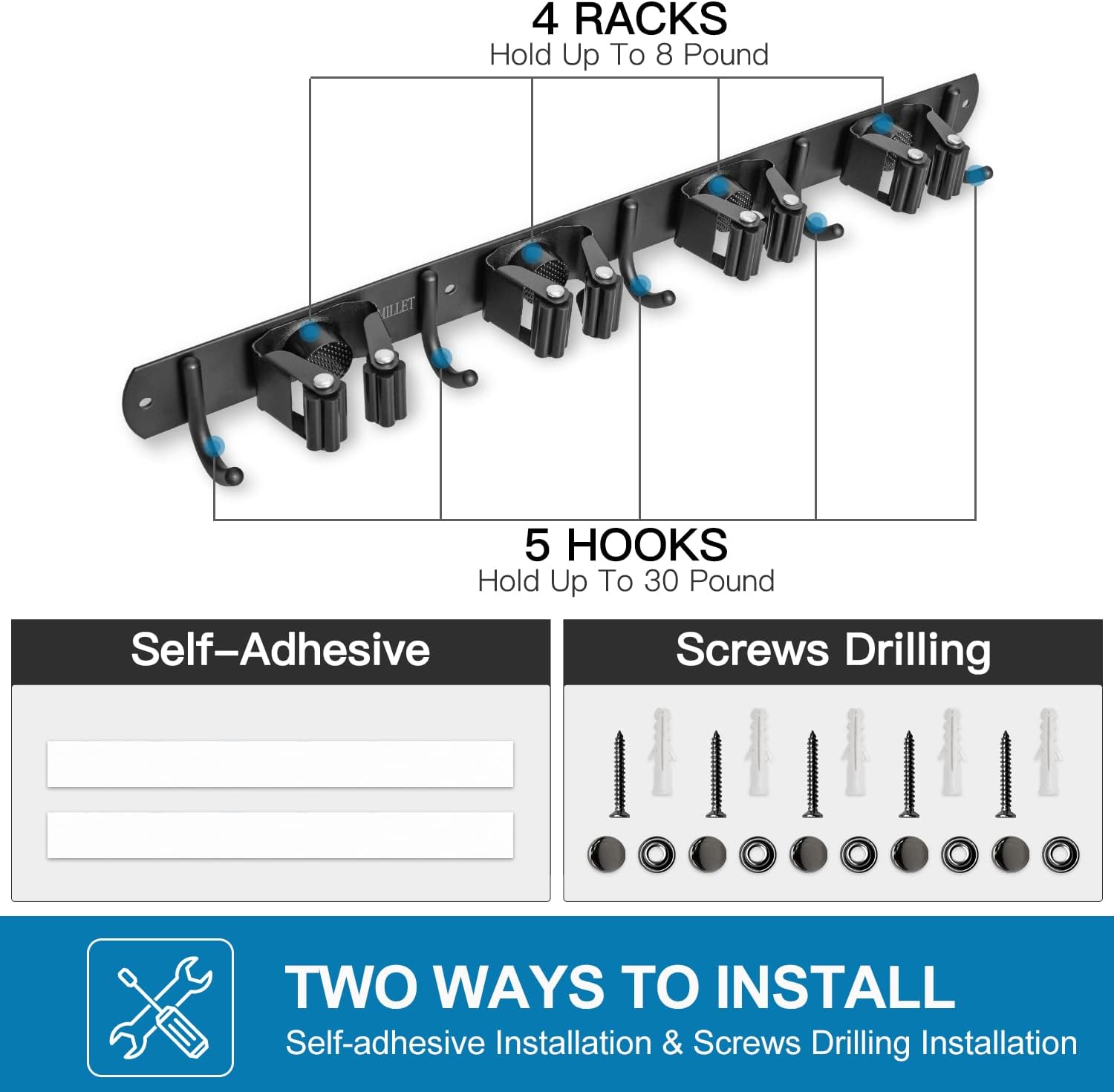 - 🧹 HEAVY DUTY: Mop holder grip everything tightly and securely without slip. It can hold up to about 9 tools in total. Keep your place cleaned up and keep things organized.