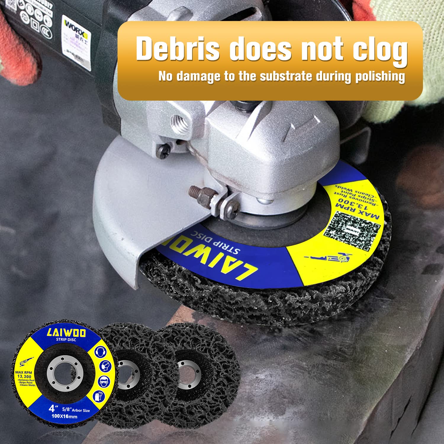 - 【Cleaning and Stripping】 The paint stripping wheel boasts robust functionality, capable of tasks such as grinding welding joints, removing burrs from oil pipes, ceramic polishing, paint stripping, rust and oxide removal.