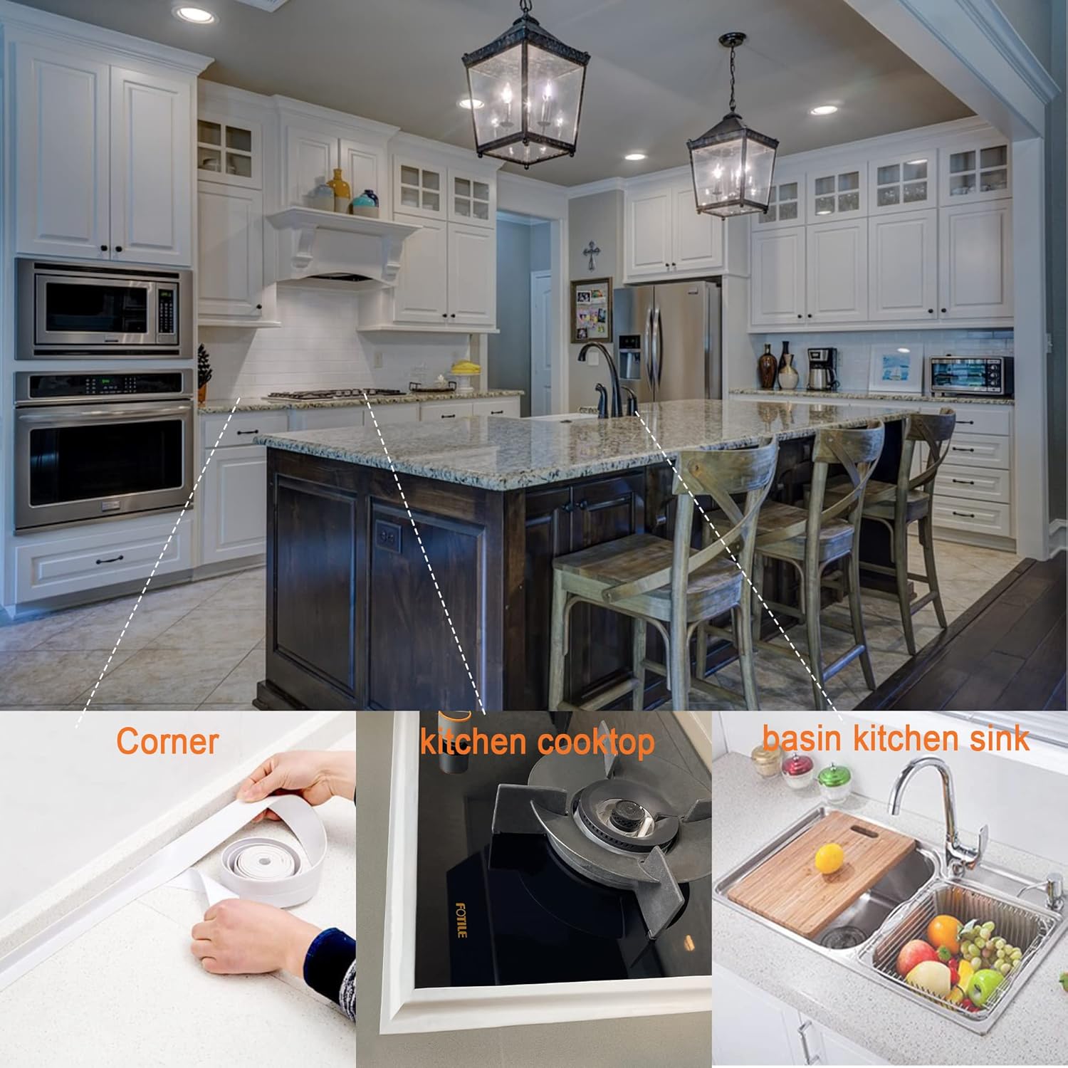 - 【Wide Applications】The sealant caulk provides a professional look to the bathroom area and kitchen, keeping your house clean and tidy for a long time. It designed for the home. Caulk is ideal for tubs, toilets, corners, bathrooms, kitchen countertops, basins, sinks, gas cooktops, marble countertops as bathtub caulk tape, molding tape,sealing strip tape for bathroom. Whether it is glass surface, wood surface, metal surface, plastic surface, tile surface, marble surface, our tape can be used.