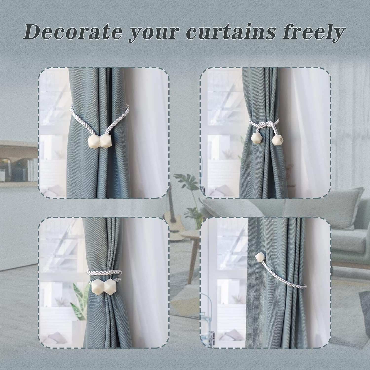 • [Variety of use methods, suitable for a wide range of scenarios] You can clamp the curtains in different elegant ways, and when you don't use the curtains, you can fix them anywhere, which is perfect for living room, bedroom, kitchen, dining room, bathroom and office.