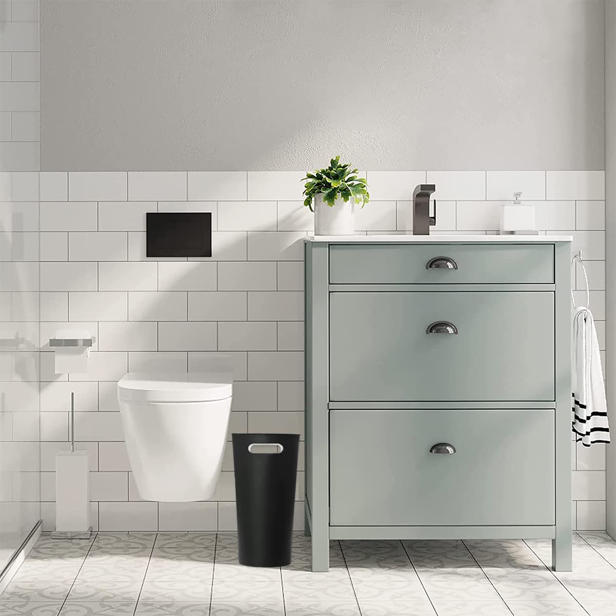 - Portable Small Waste Basket -- With built-in handle, no more putting your hand inside top of can to pull it out. Slim and lightweight this versatile trash and recycling bin can be used in any room in your home.