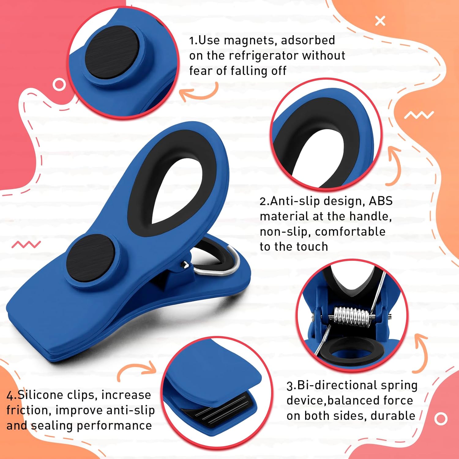 12 Pack Chip Clips, Colorful Magnetic Clip, Plastic Bag Clips with Airtight Seal Grip for Bread, Food Bags, Garden Plants, Snack Bags and Kitchen Organization