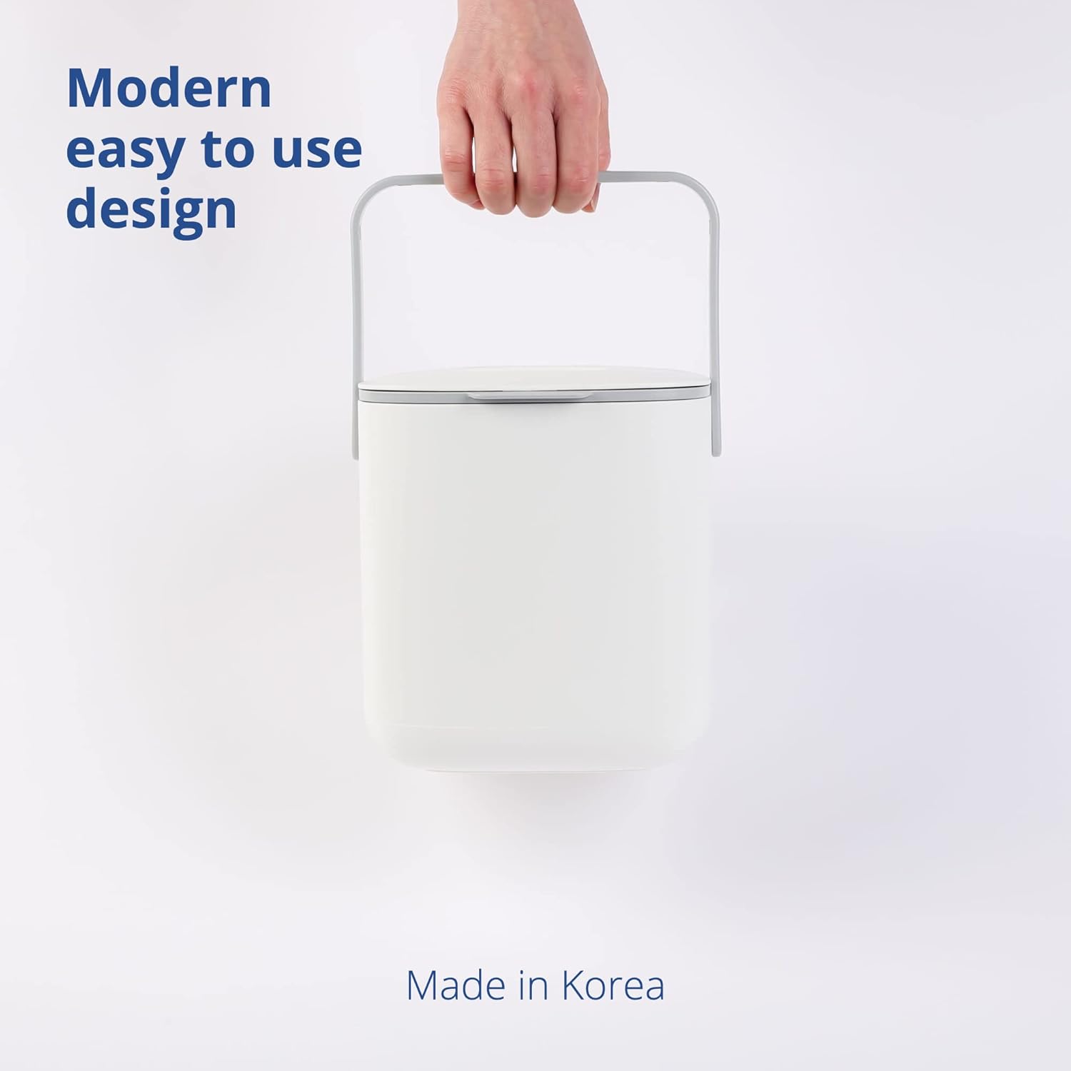 - EASY CLEANING - Made in South Korea from easy-to-clean dishwasher safe plastic, the inside of this indoor compost bin is smooth to prevent food waste from sticking, and the inner basket is removable, making cleaning a breeze. Whether you hand wash this food scrap bin or place it in the dishwasher, a clean compost pail is just a few minutes away.