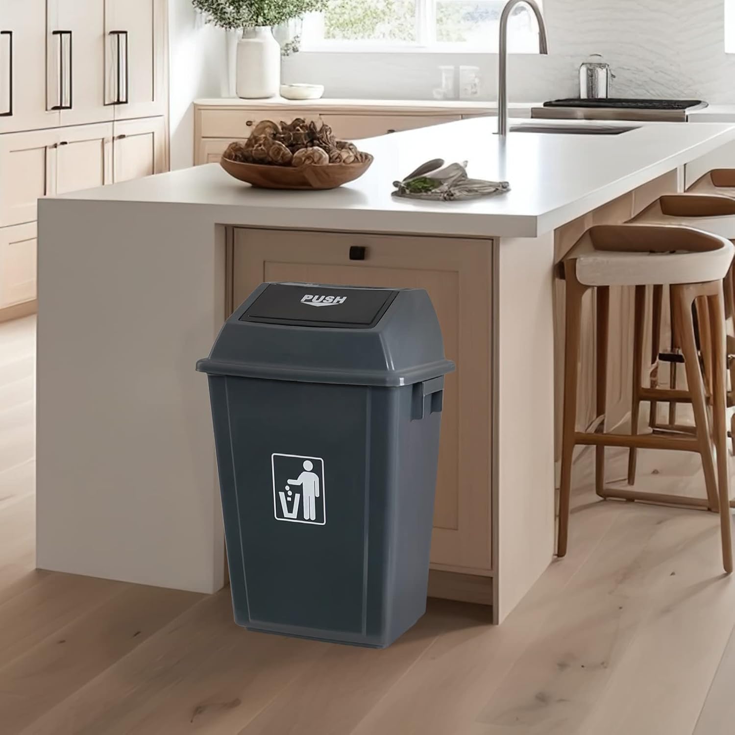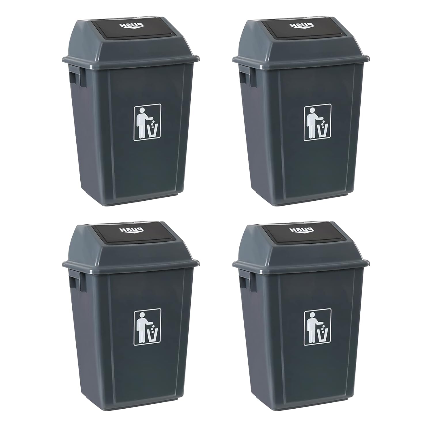 Morcte 4-Pack 13 Gallon Kitchen Trash Can with Swing Lid, Plastic Kitchen Garbage Can, Gray