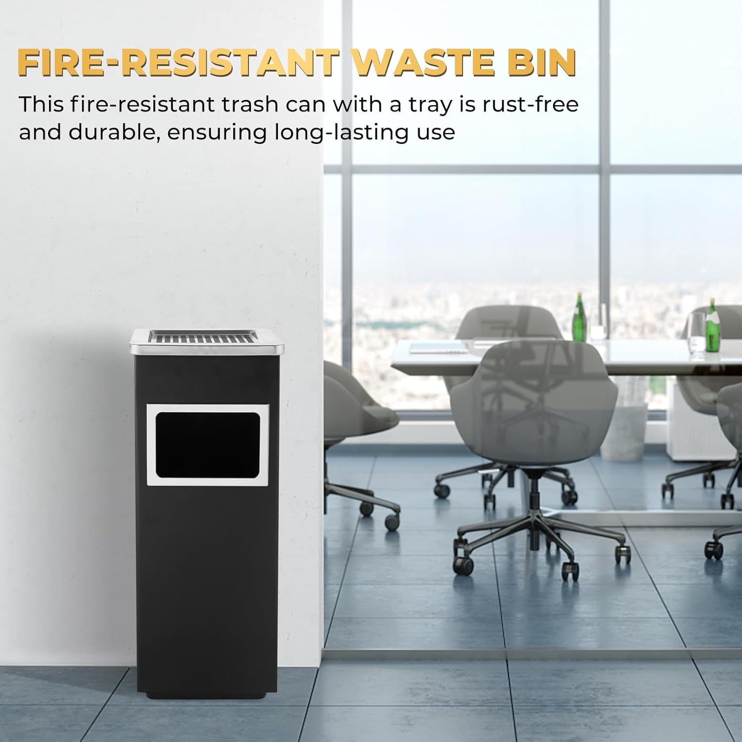 Trash Can Outdoor Waste Container Square Stainless Steel Trash Can with Removable Inner Bucket for Disposal Commercial Waste Container 9.45‘’ x 9.45‘’ x 24.02‘’-Black