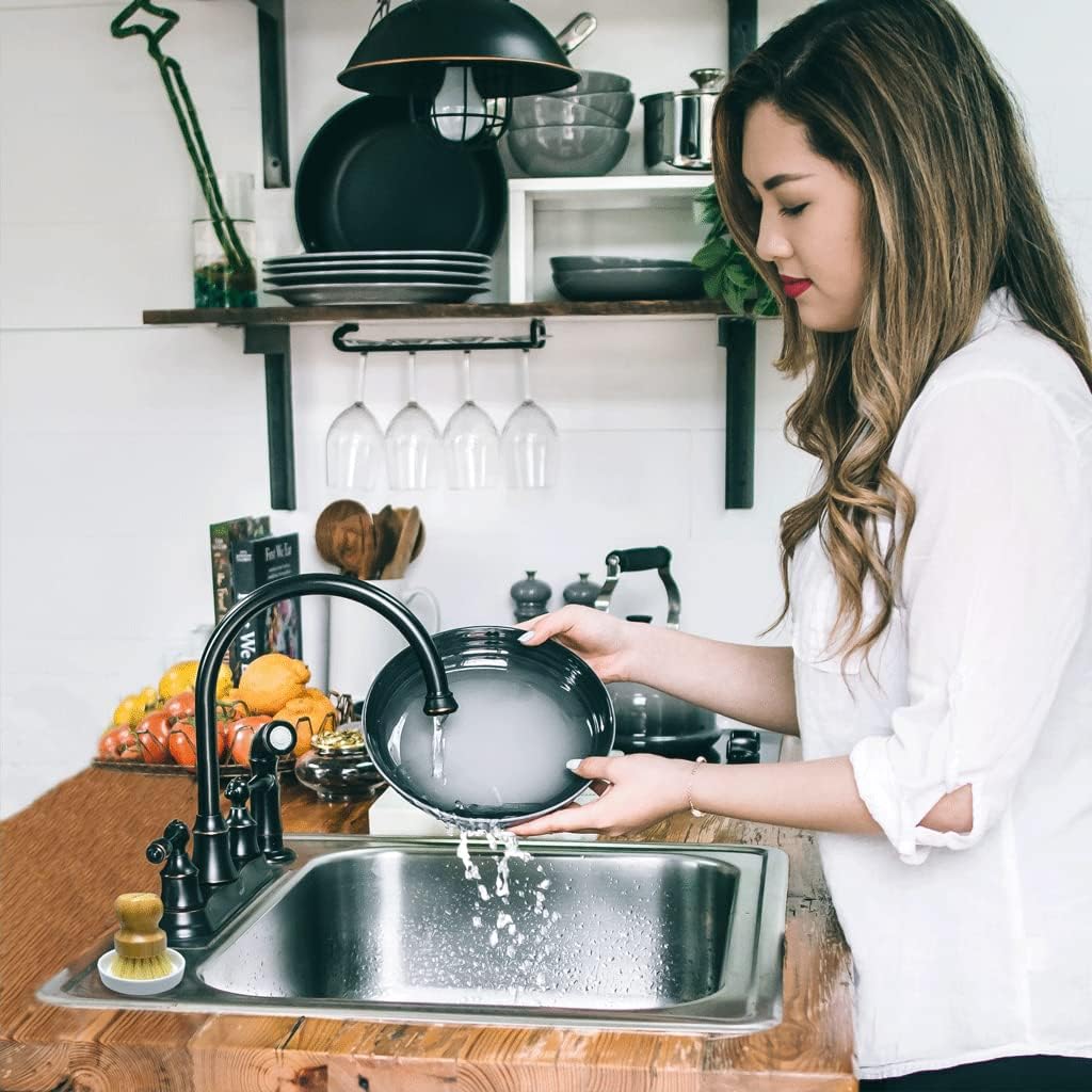 - Ergonomic Bamboo Handle - The SUPERWASH PLUS dishwashing brush is crafted from natural bamboo and has a good texture. Featuring a sleek groove in the middle part, the round handle fits nicely in your hand, very easy to hold and apply pressure for tough scrubbing. It looks much nicer than the plastic brush.They are very sturdy and easy to use, deal for cleaning cast iron pots, pans and sinks.
