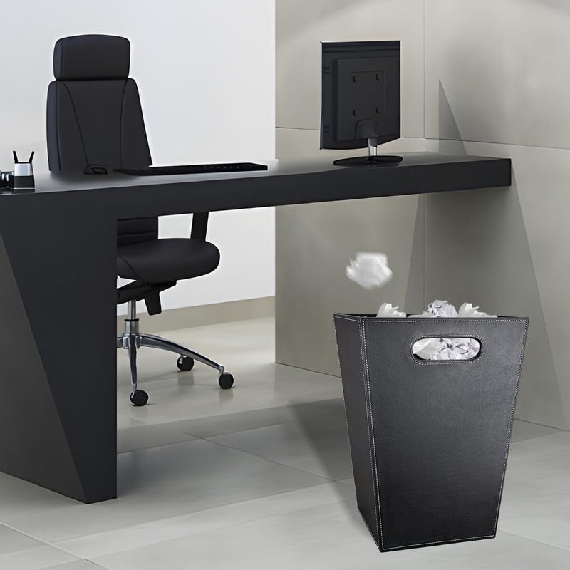 - Versatile Use: The waste basket for bedroom ideal for various settings, including bathroom, kitchen, bedroom, laundry room, office, dorm, this leather trash can fits seamlessly into any environment, providing a stylish and functional waste disposal solution.