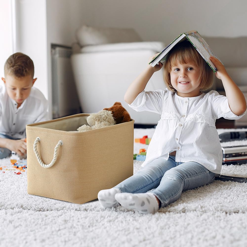 TheWarmHome Organization and Storage Basket for Organizing - 3 Pack 16x12x12 inch Cube Fabric Storage Cubes, Storage Bin for Shelves Gift Closet Organizer Cloth Toy (Beige)