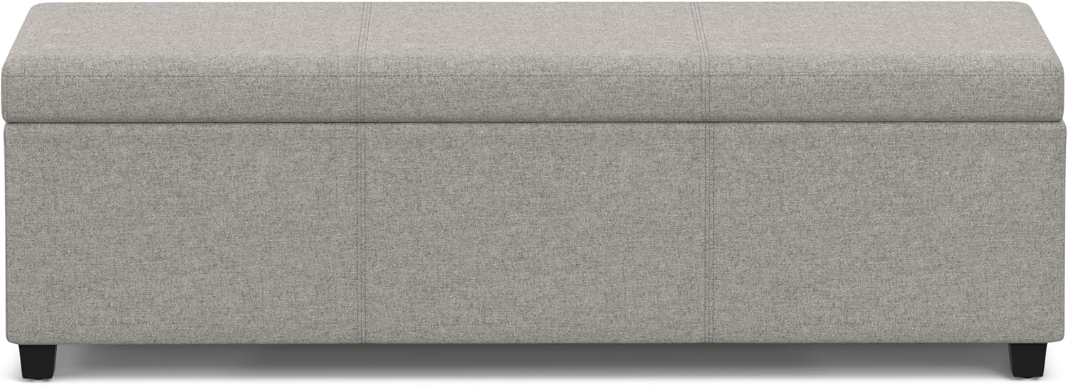 SIMPLIHOME Avalon 54 inch Wide Contemporary Rectangle Extra Large Storage Ottoman Bench in Cloud Grey Polyester Linen Fabric, Assembled, for The Living Room, Entryway and Family Room
