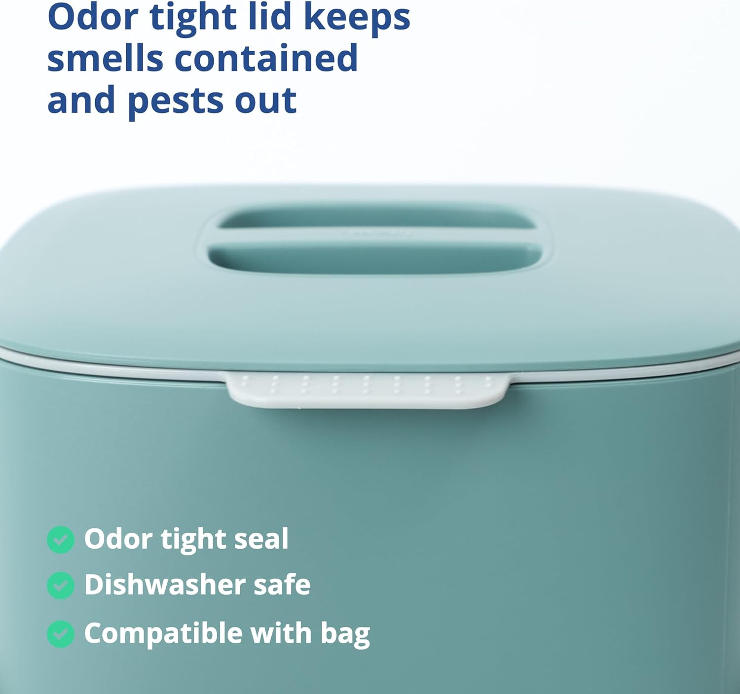 - KEEPS SMELLS CONTAINED - This food waste bin has a modern design that looks great and contains odors without the need for costly charcoal filters.