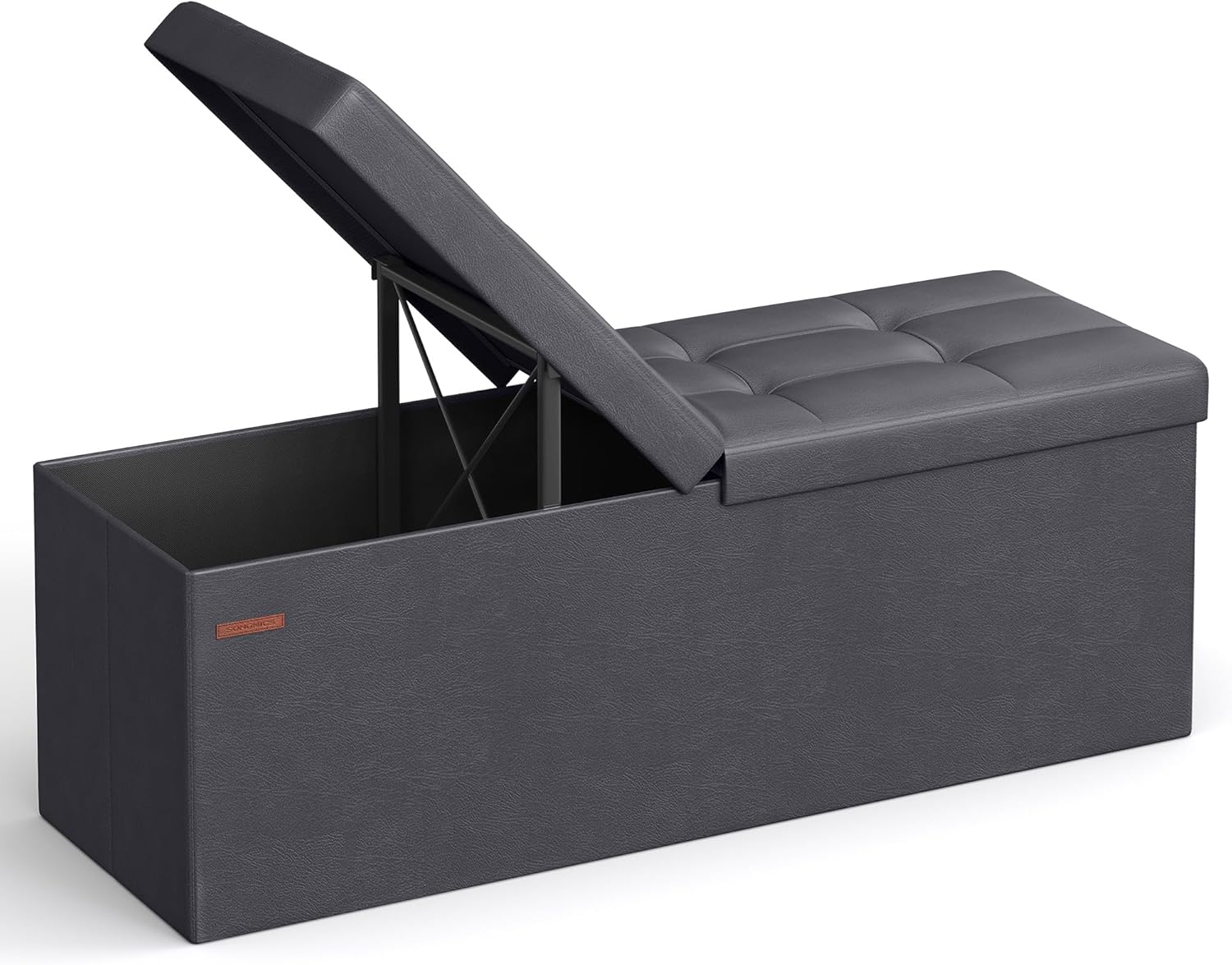 SONGMICS MAZIE Collection - 43 Inches Storage Ottoman Bench with Flipping Lid, Storage Chest with Iron Frame Support, Load 660 lb, for Living Room, Bedroom, Synthetic Leather, Dark Gray ULSF075G01