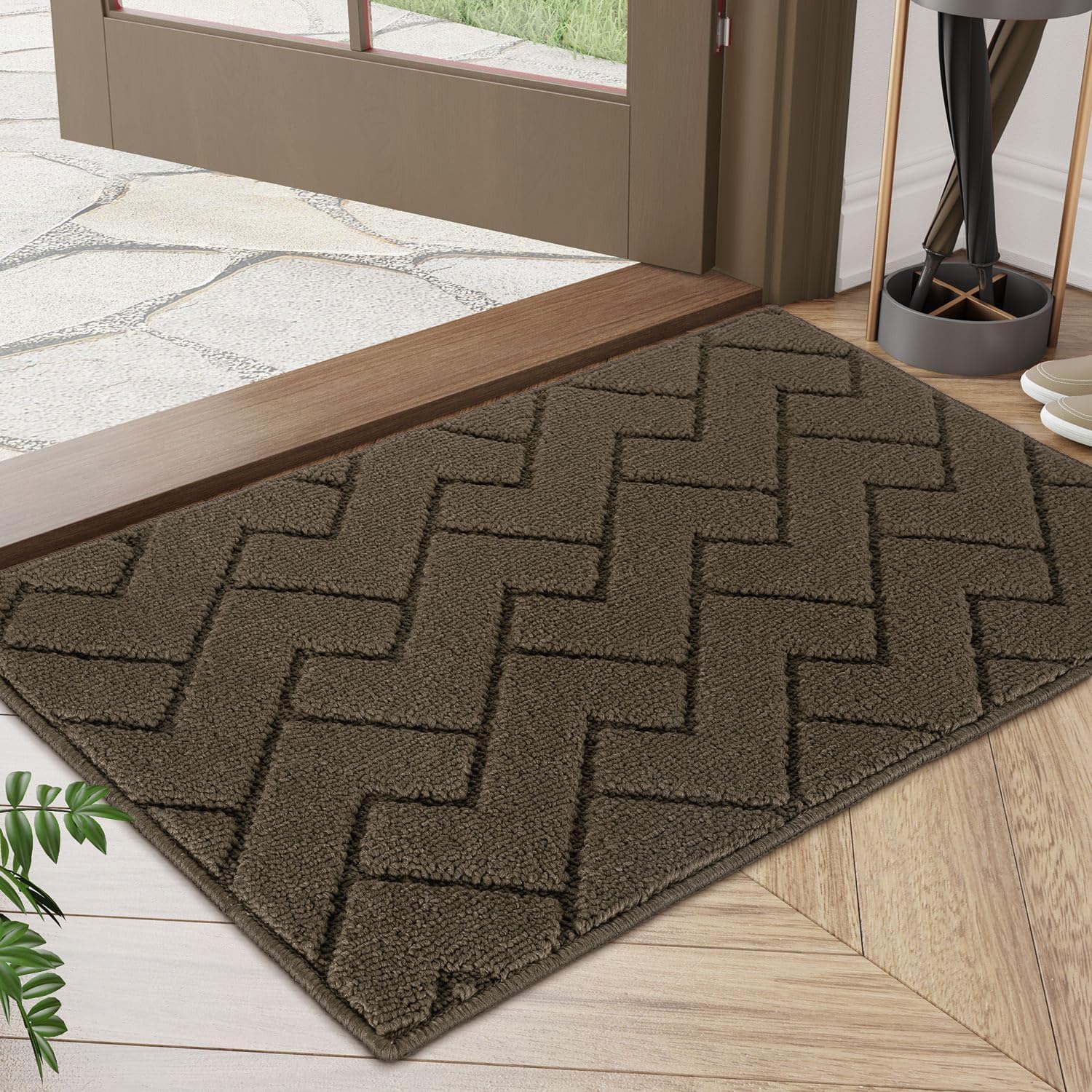 hicorfe Front Door Mat Outside Entrance,20"x31.5" Absorbent Muddy Dirt Resist Welcome Door Mats Outdoor Indoor,Stain and Fade Resistant,Non Slip Backing Entry Mat Doormat for Entryway(Latte)
